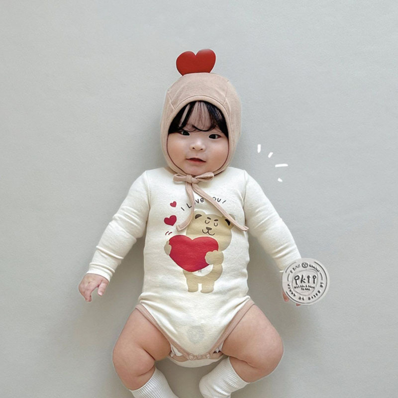 아기 소년과 소녀를위한 신생아 봄과 여름 등산 세트 한국 스타일 부드러운 면 귀여운 방귀 포장 사랑 곰 점프 슈트