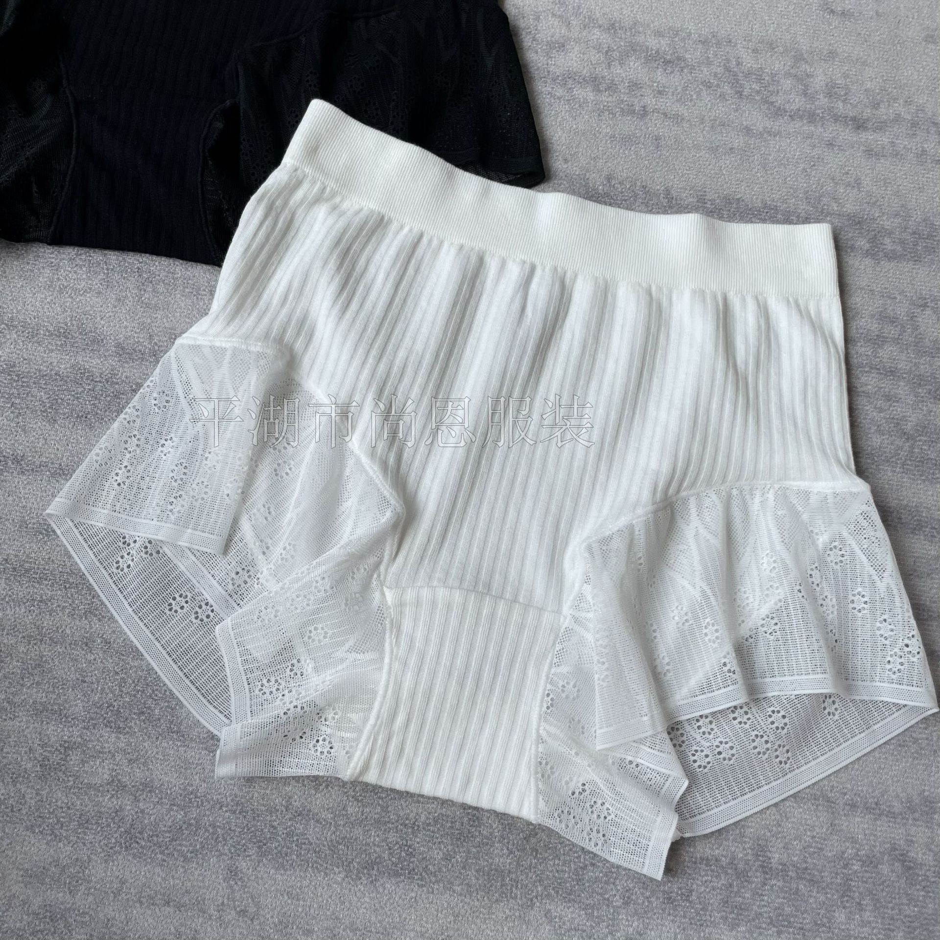 고탄력 편안한 뽕나무 실크 바닥 파일! 여성용 미드 웨이스트 추적없는 레이스 보더 사각팬티 안전 바지스토어 가기