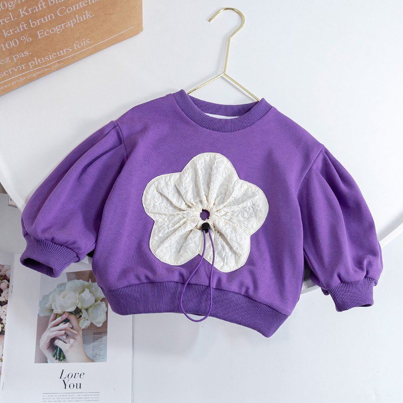 여아 스웨터 2023 가을 한국 스타일 새로운 입체 플라워 긴팔 루즈한 라운드 넥 캐주얼 모든 매치 봄과 가을 탑스토어 가기