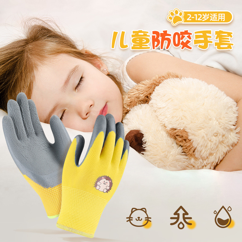 어린이 특수 장갑 도매 핀치 방지 게 원예 방수 미끄럼 방지 내마모성 라텍스 노동 장갑스토어 가기