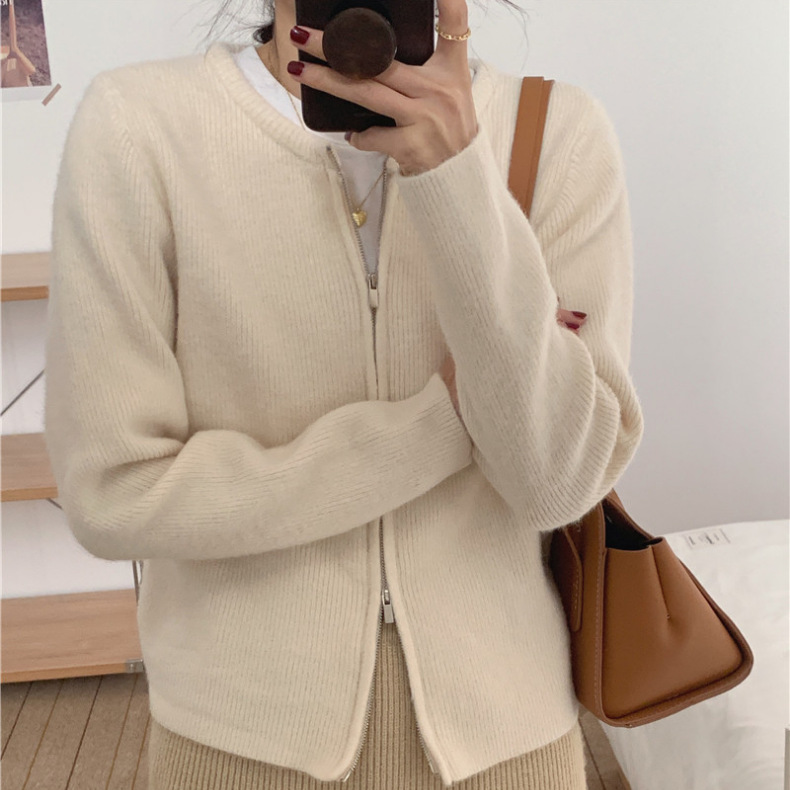 韩系简约风拉链针织开衫女2022秋季新款圆领纯色毛衣女外套¥40立即采购
