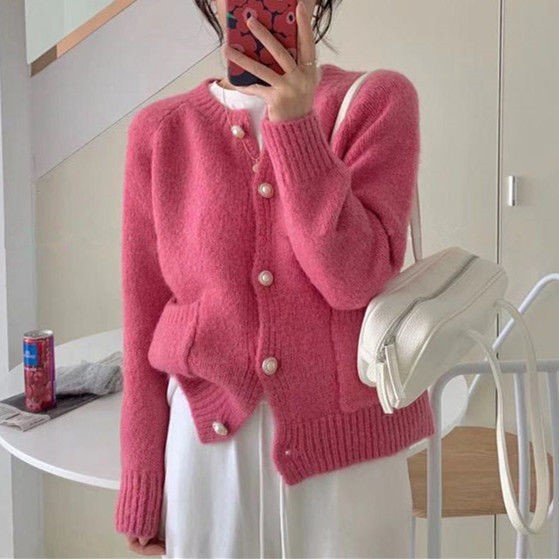 韩系圆领纯色毛衣外套女2022秋冬新款宽松气质休闲针织开衫潮¥35立即采购