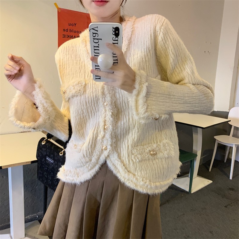 chic温柔甜美慵懒针织开衫2022秋季新款毛须边毛衣外套v领上衣¥43立即采购