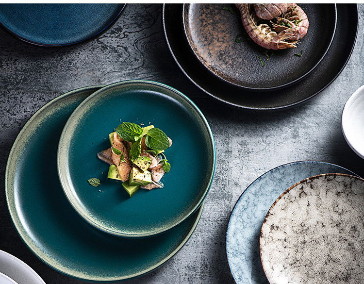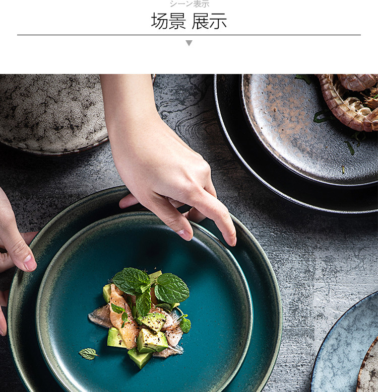 일본식 디너 플레이트 크리 에이 티브 아름다운 세라믹 플레이트 접시 홈 빈티지 식기 아침 스테이크 서양 접시 플랫 플레이트스토어 가기