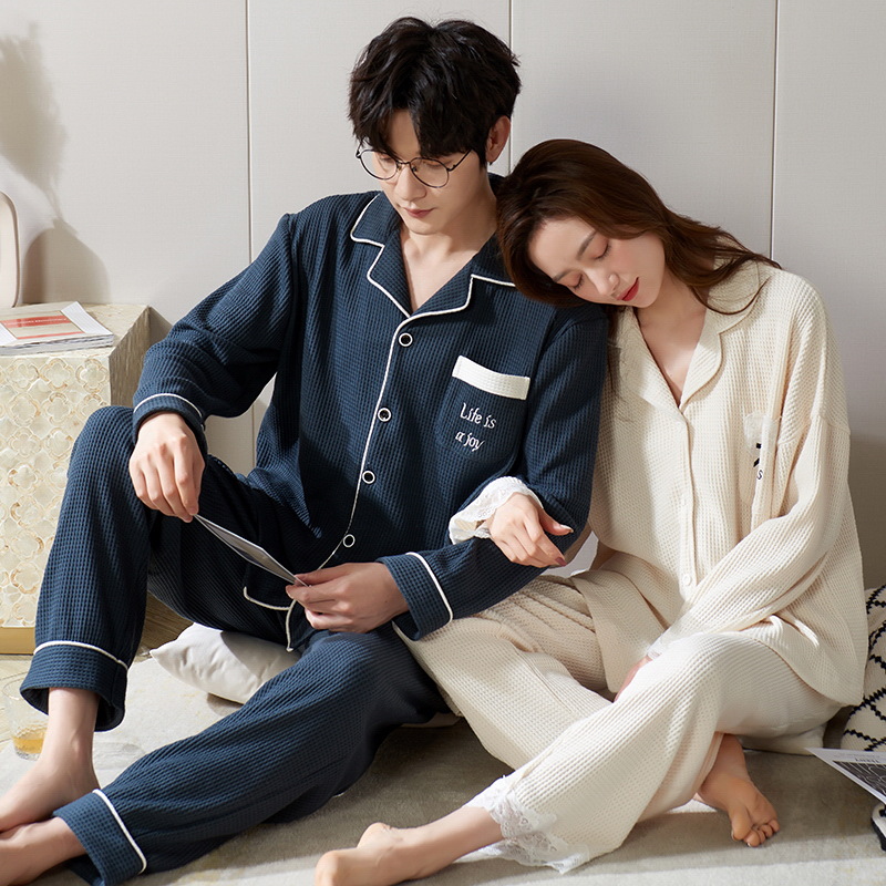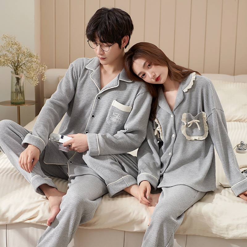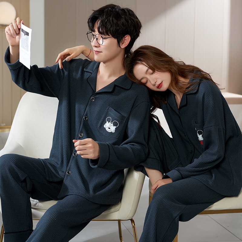 도매 커플 잠옷 여자의 면 긴 소매 얇은 가을 남자의 가정 의류 캐주얼 가디건 봄과 가을 세트