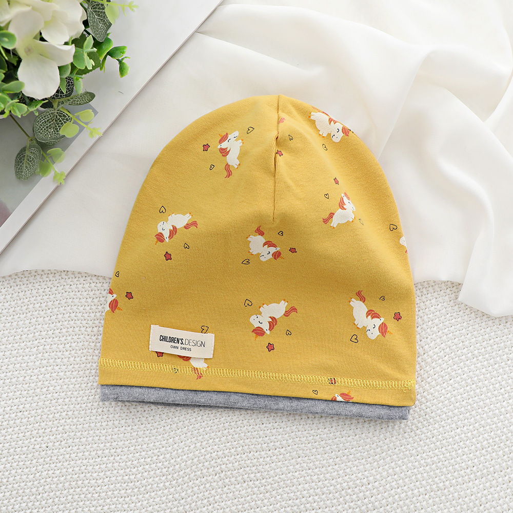 2023 새로운 대비 색상 얇은 단일 레이어 어린이 스택 캡 봄과 가을 방풍 아기 모자 소년과 소녀를위한 인쇄 모자