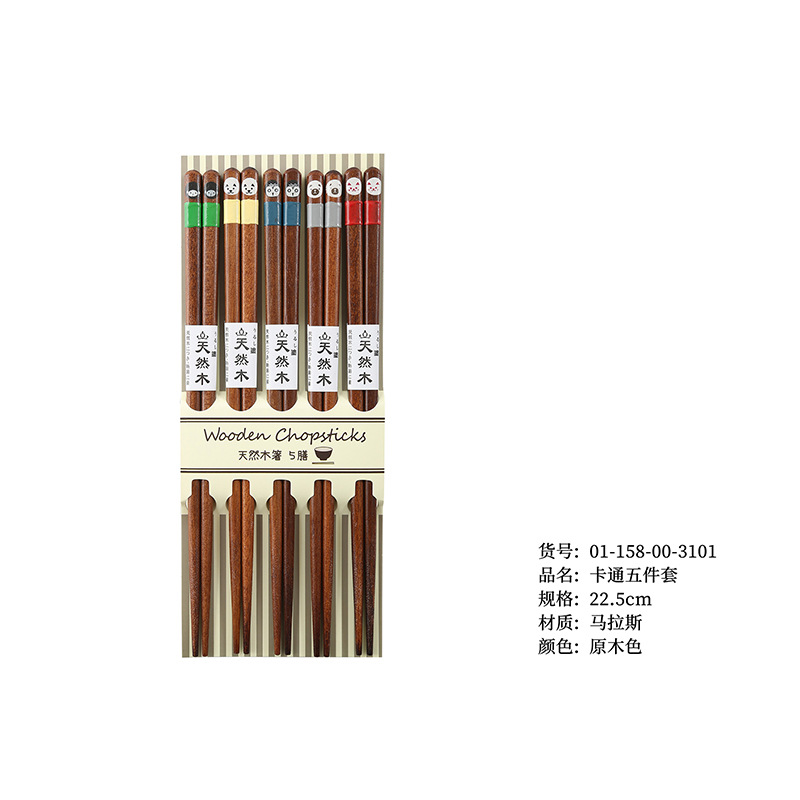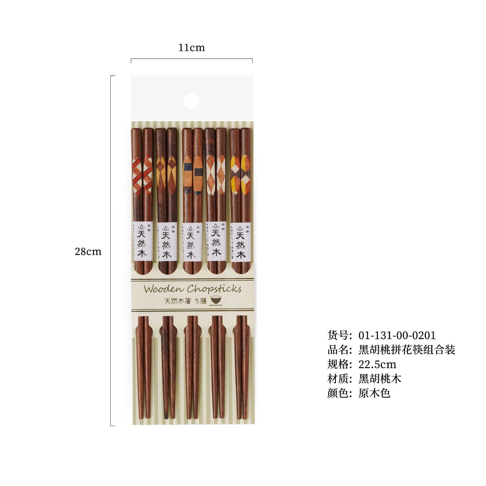 • 검은 호두 나무 젓가락 5 쌍의 카드