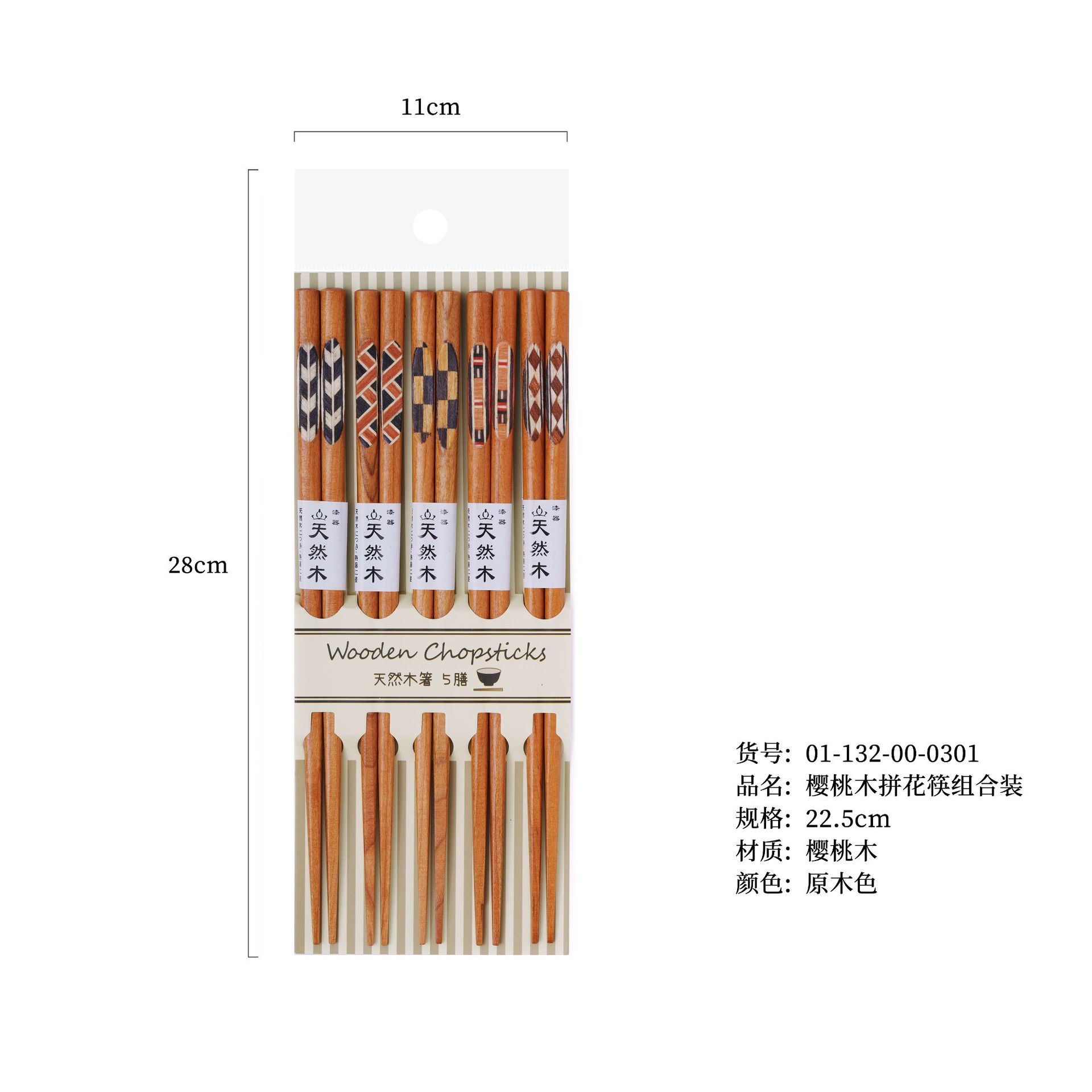 • 체리 나무 쪽모이 세공 젓가락 5 쌍의 카드