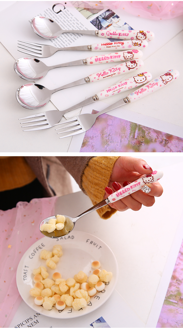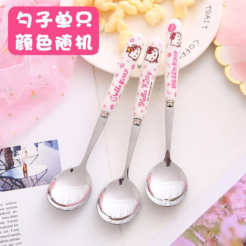 어린이 먹는 숟가락 둥근 머리 큰 숟가락 긴 손잡이 스테인레스 스틸 포크 가정용 크리 에이 티브 만화 귀여운 싱글스토어 가기