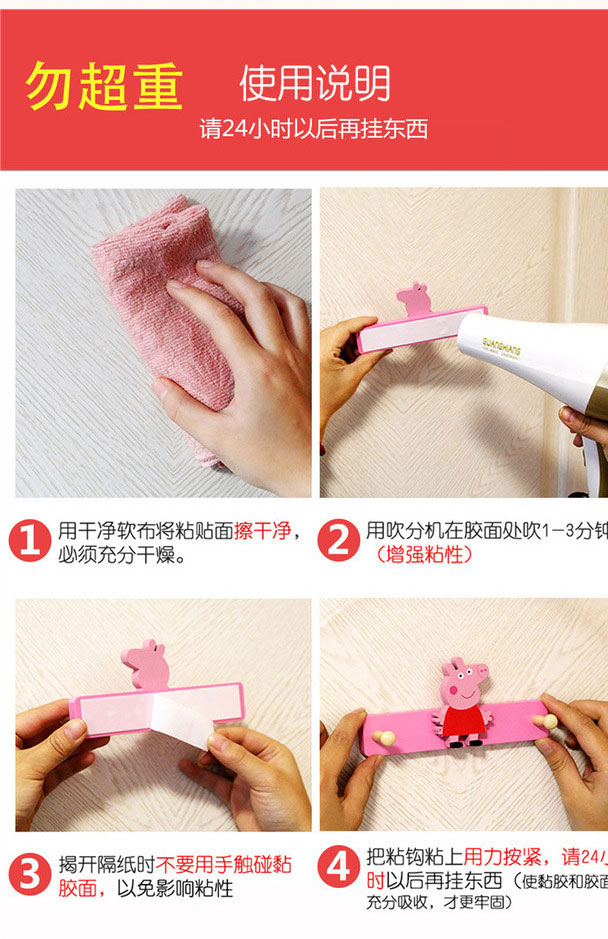 小新猫咪卡通可爱三连钩萌萌的粘钩钉钩厨房挂钩动物挂钩多用墙上