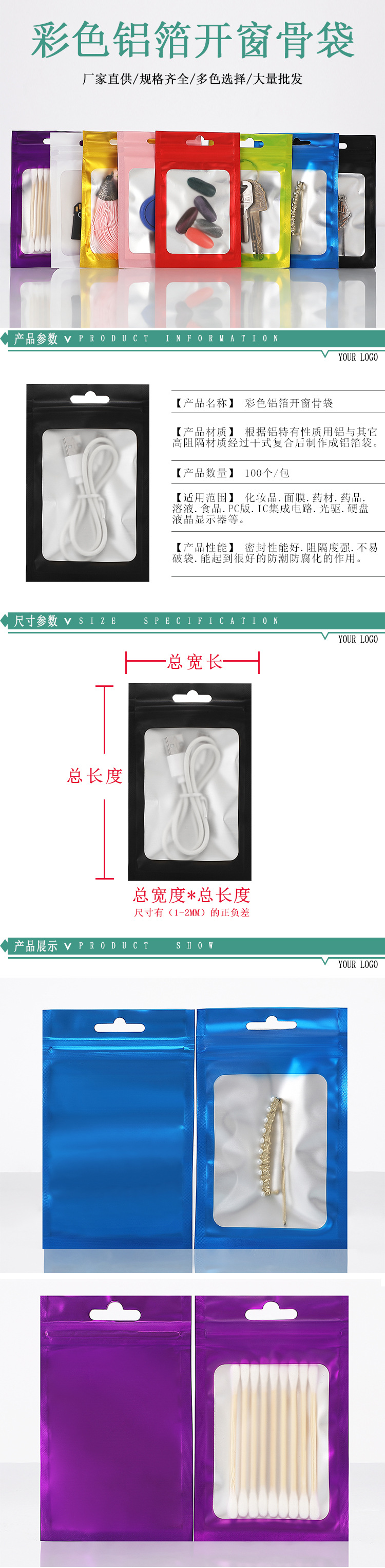 다채로운 알루미늄 호일 창 뼈 가방 서리로 덥은 음양 지퍼 가방 휴대 전화 케이스 비닐 봉투 보석 낚시 장비 액세서리 포장 가방