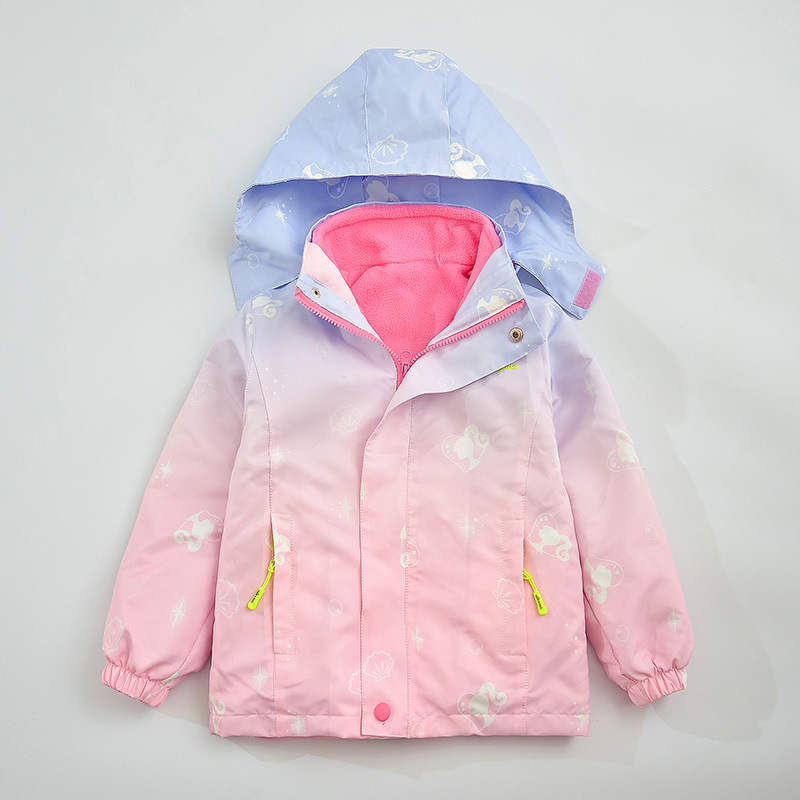 여아용 두꺼운 재킷 가을 겨울 의류 2025 신상 중대형 어린이용 3-in-1 탈부착 가능한 방수 재킷 아동용 수출용 재킷