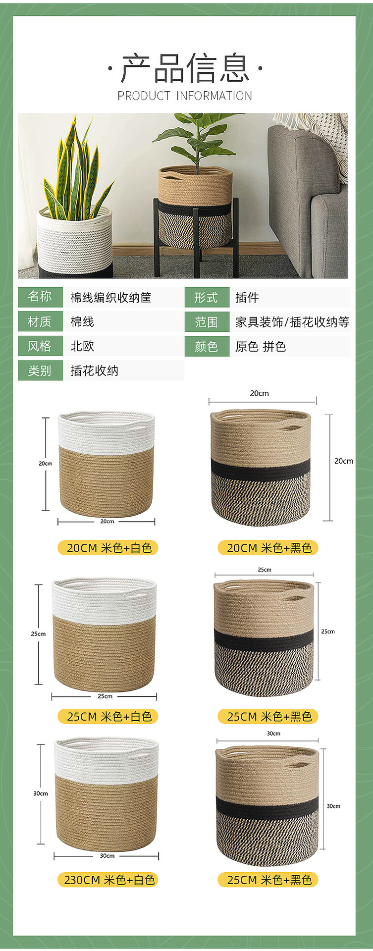 면 로프 수납 바구니, 가정용 방진 접이식 욕실 더러운 옷 바구니, 간식 바구니, 화분, 녹색 식물 수납 바구니, 수납 바구니
