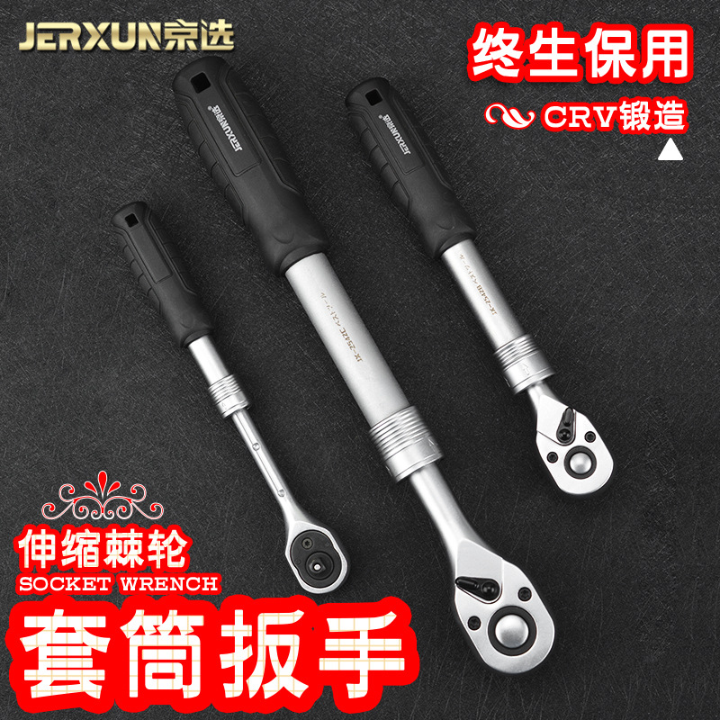 Jingxuan 래칫 소켓 렌치 텔레스코픽 연장 대형, 중형 및 소형 비행 빠른 양방향 토크 자동차 수리 렌치에서 떨어지는