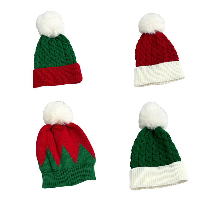 유럽과 미국의 어린이 니트 모자 가을과 겨울 따뜻한 울 모자 아기 모피 공 차가운 모자 크리스마스 모자 대외 무역 국경 풀오버 모자