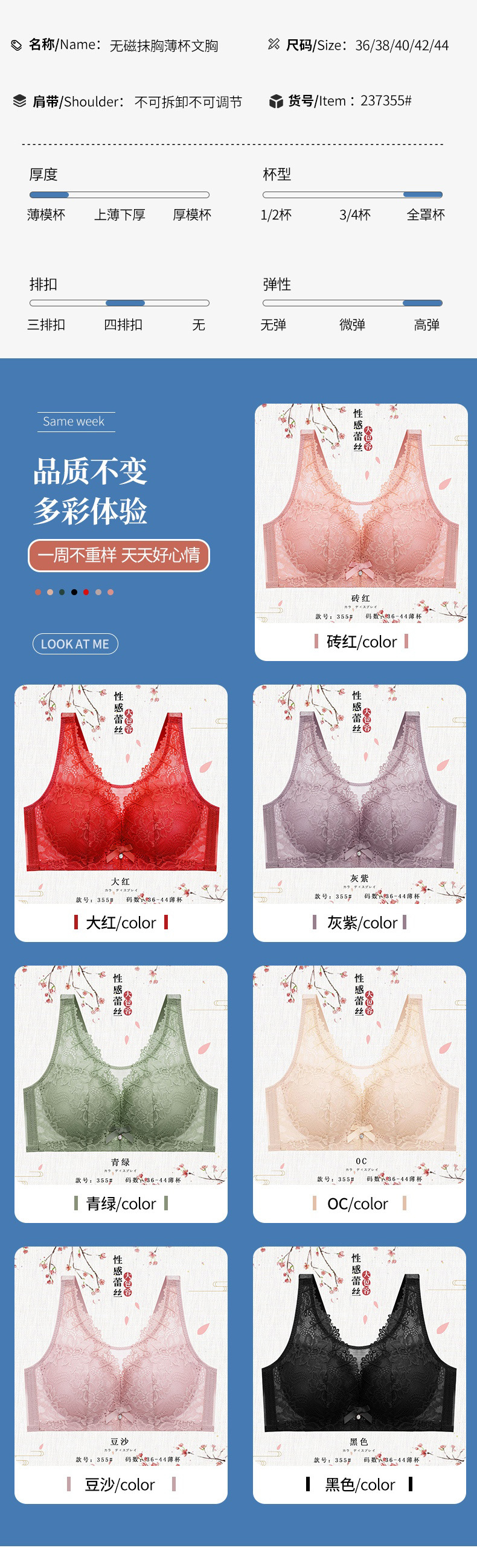 237355 # 36-44CD 무자성 브라탑 얇은 컵 노출방지 보조가슴수축 아이스 실크 네줄 버튼 브라 제조업체 도매스토어 가기