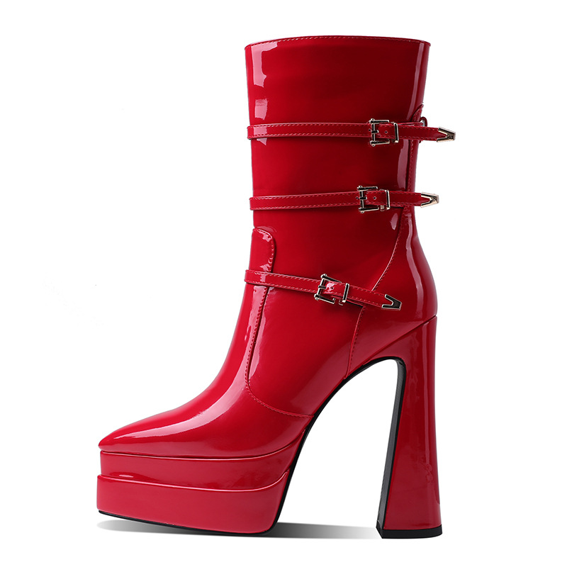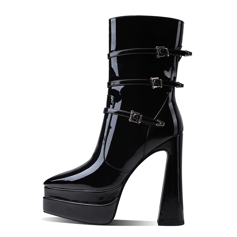 봄과 가을 2022 새로운 두꺼운 뒤꿈치 더블 물 테이블 사이드 지퍼 두꺼운 바닥 패션 부츠 플러스 사이즈 여성 신발 크기 41