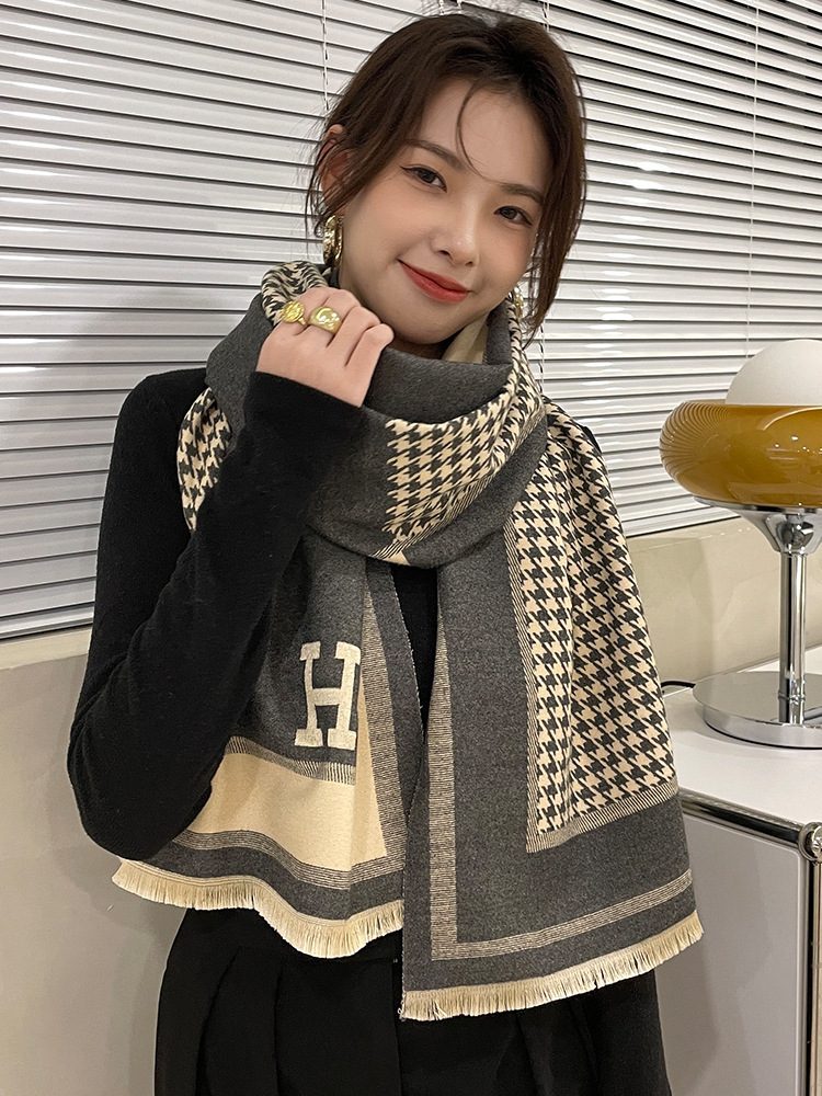 가을과 겨울 새로운 하운즈투스 자카드 숄 H 편지 두꺼운 넓어진 스카프 여성용 모든 매치 모조 캐시미어 스카프스토어 가기