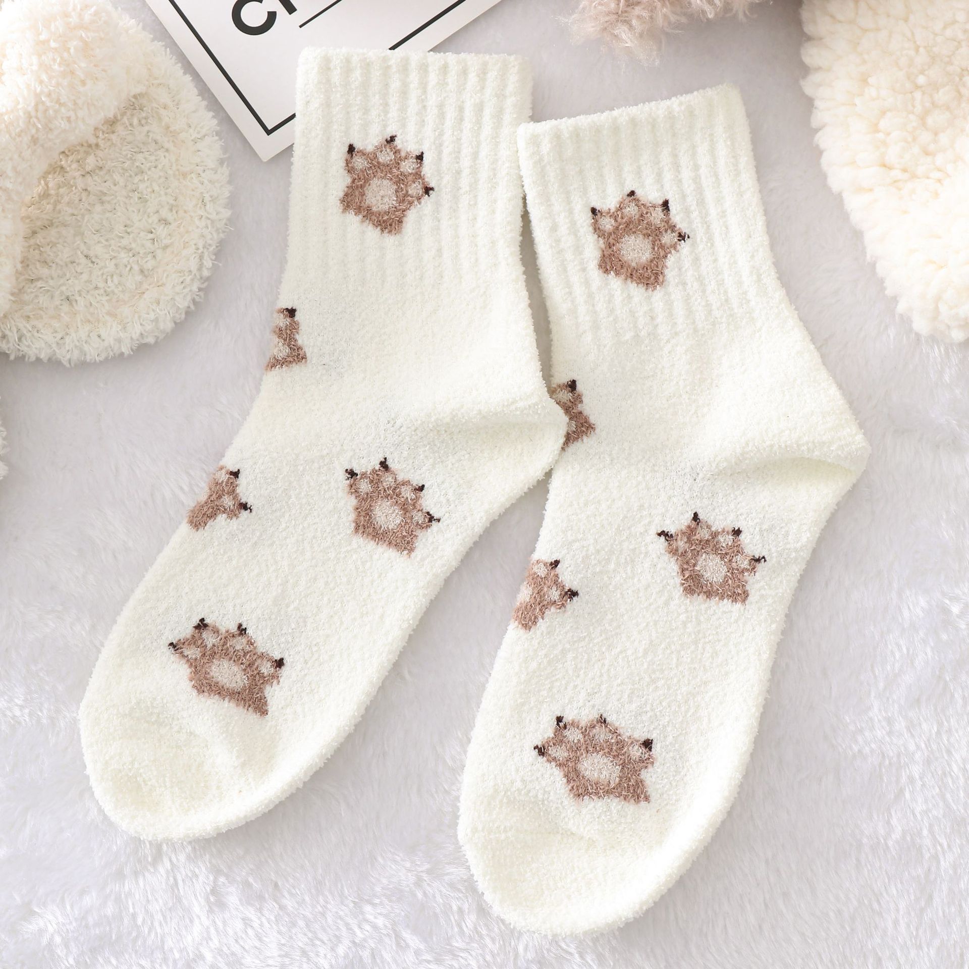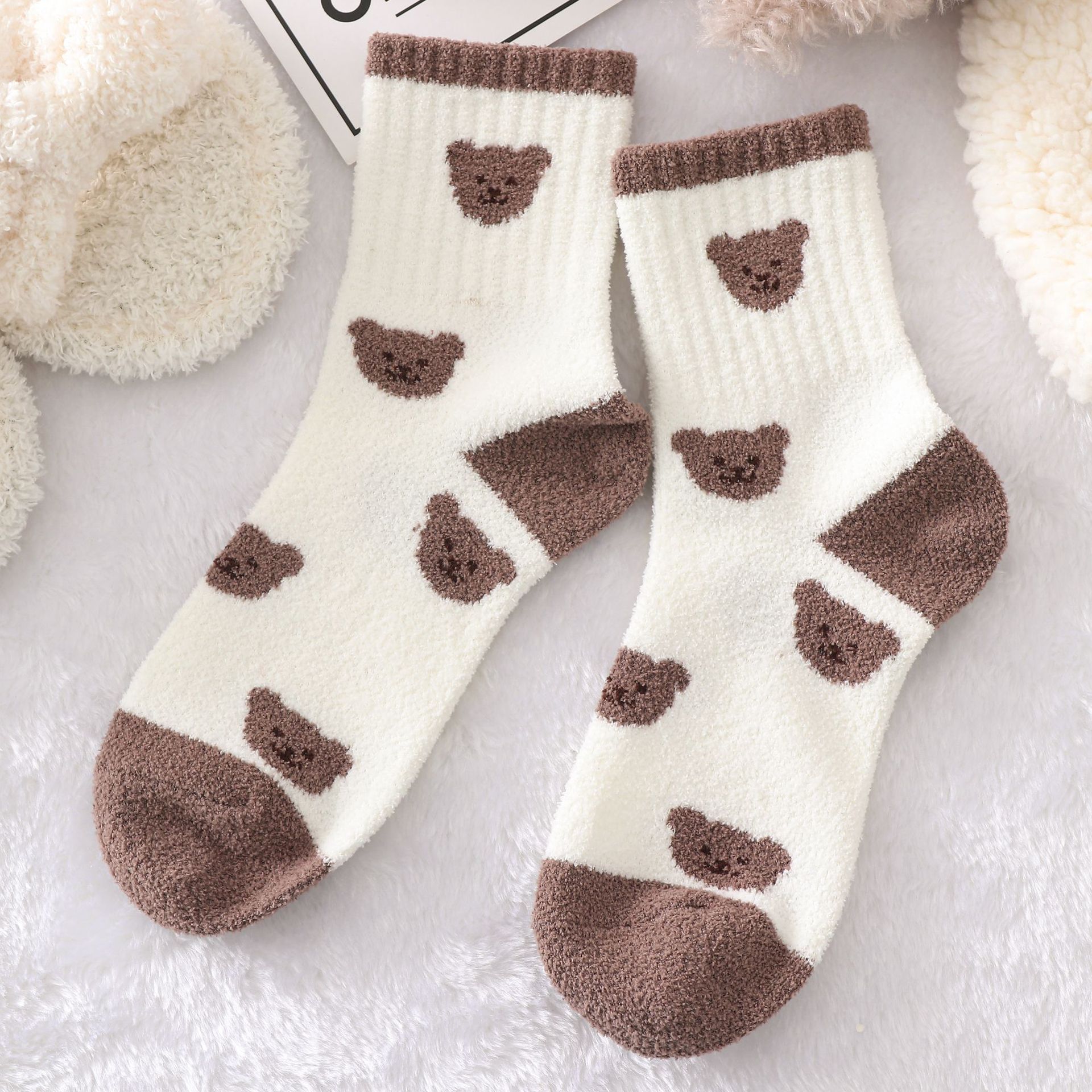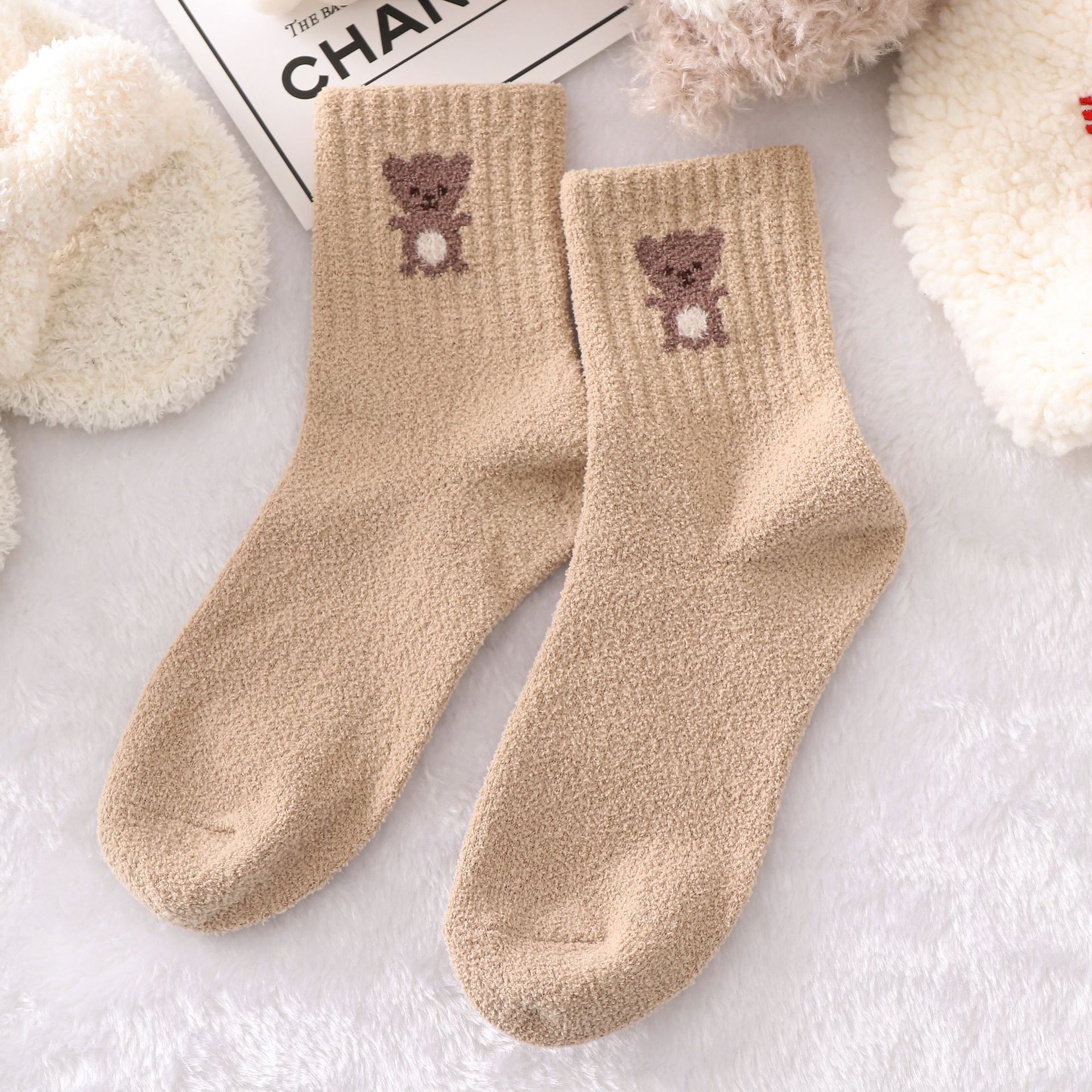 다크 브라운 곰 양말 여자의 가을과 겨울 스타킹 기모 두꺼운면 양말 유행 스타킹에 빈티지 따뜻한 바둑판스토어 가기