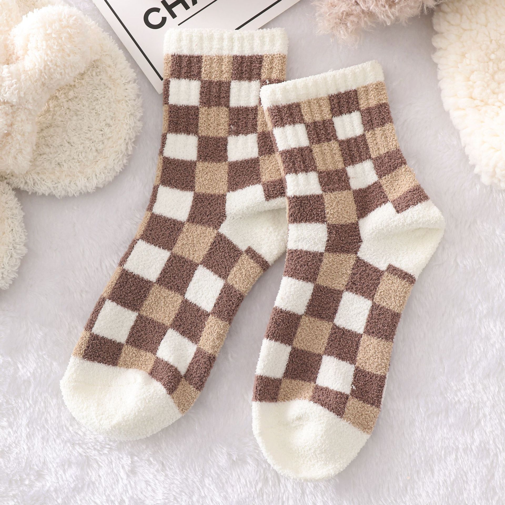 다크 브라운 곰 양말 여자의 가을과 겨울 스타킹 기모 두꺼운면 양말 유행 스타킹에 빈티지 따뜻한 바둑판
