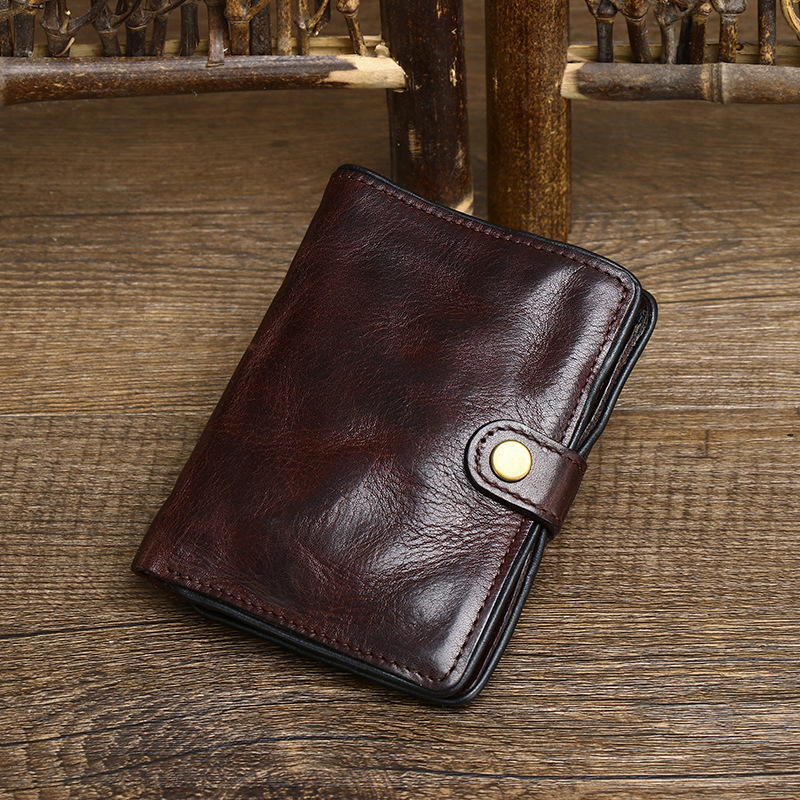 수제 빈티지 포장 탑 레이어 순수 소가죽 정품 가죽 짧은 지갑 남자의 간단한 유행 커플의 얇은 지갑