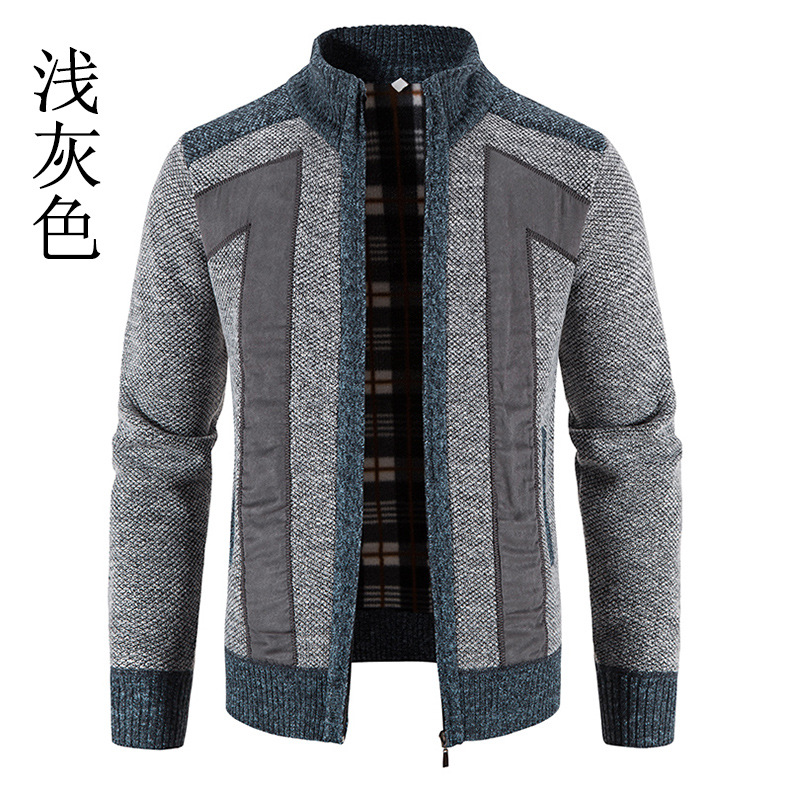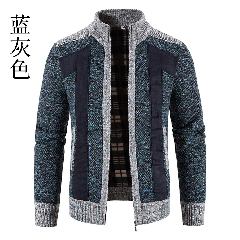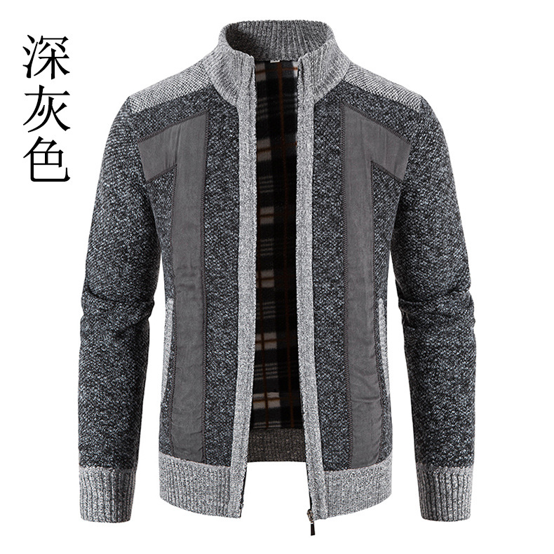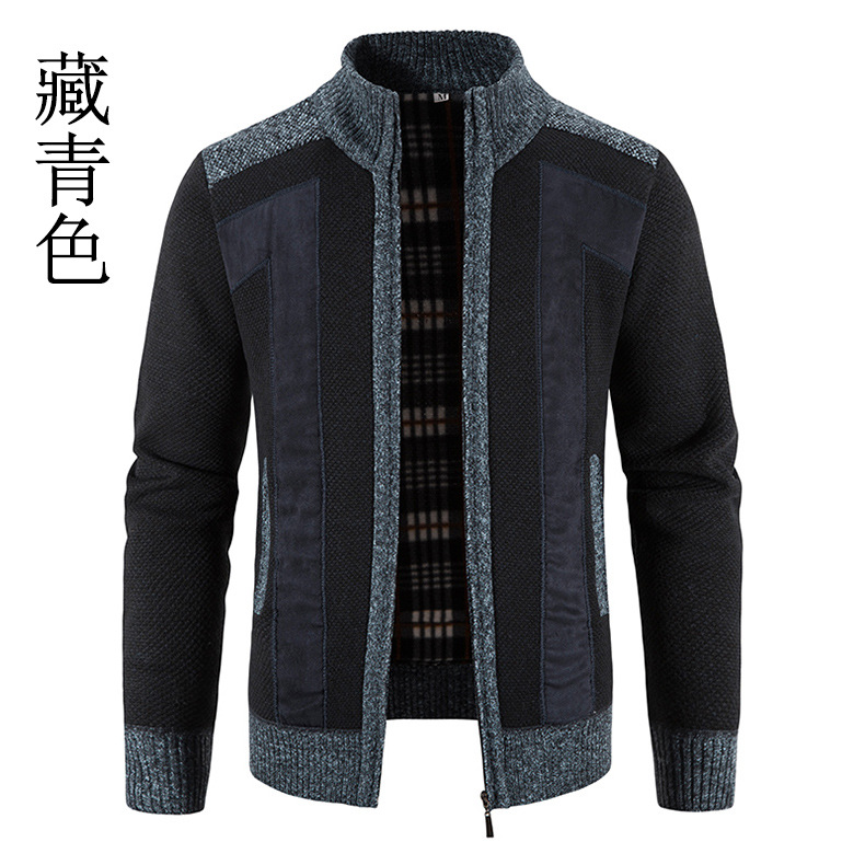 2025 겨울 남성용 스탠드 칼라 배색 플리스 스웨터 니트웨어 대형 캐주얼 가디건 자켓스토어 가기