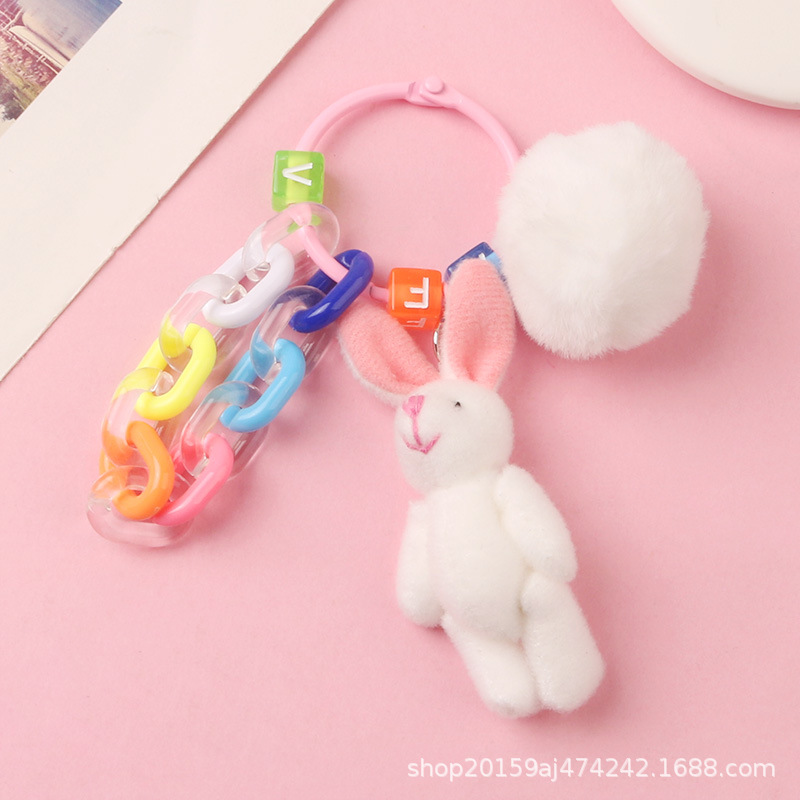 새로운 만화 흰 토끼 자동차 열쇠 고리 펜던트 귀여운 곰 봉제 인형 펜던트 컬러 체인 가방 액세서리스토어 가기
