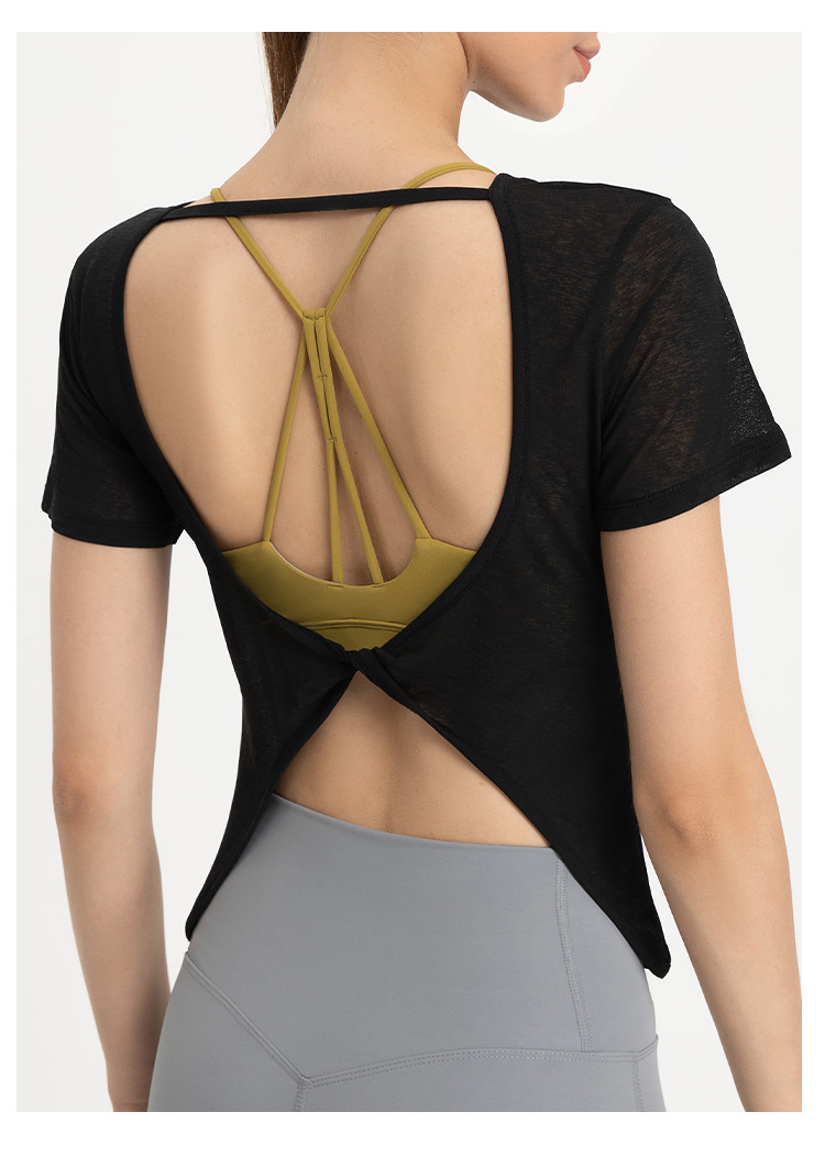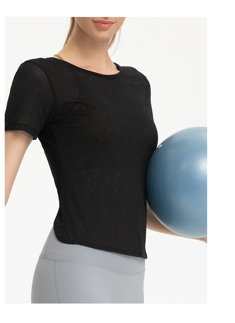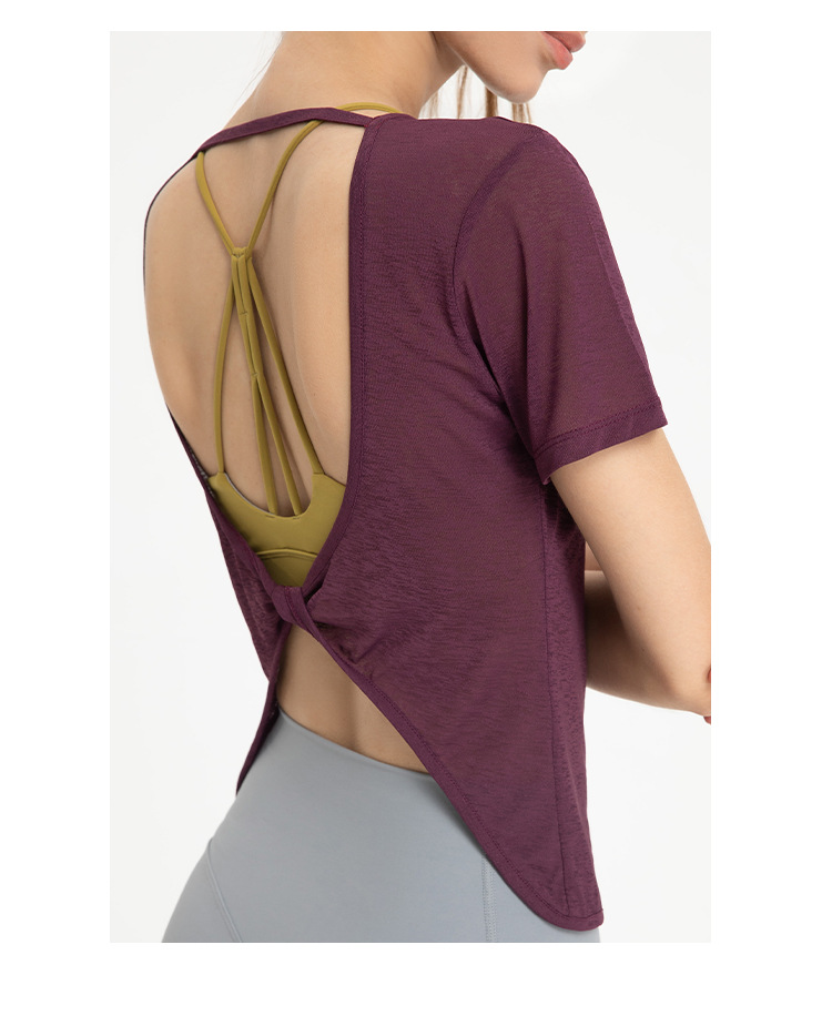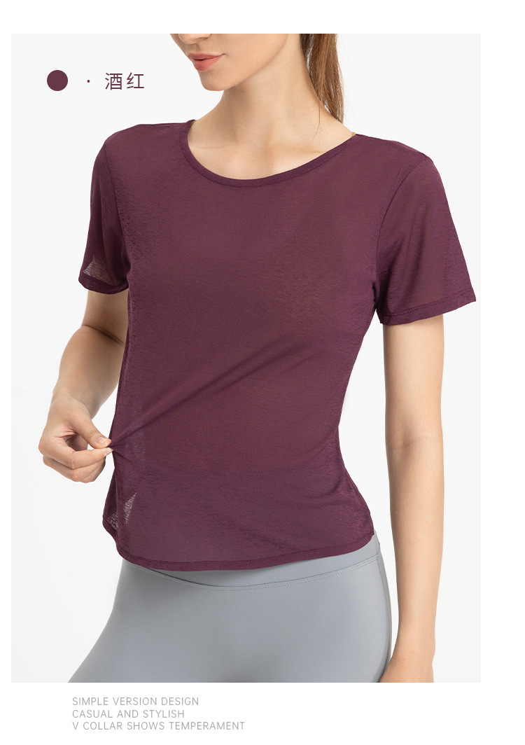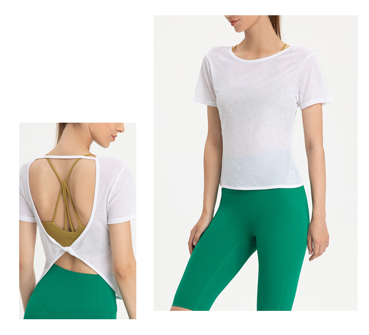 스포츠 티셔츠 여성용 경량 통기성 요가복 느슨한 아름다운 등 피트니스 블라우스 속건 필라테스 반팔 여름 달리기