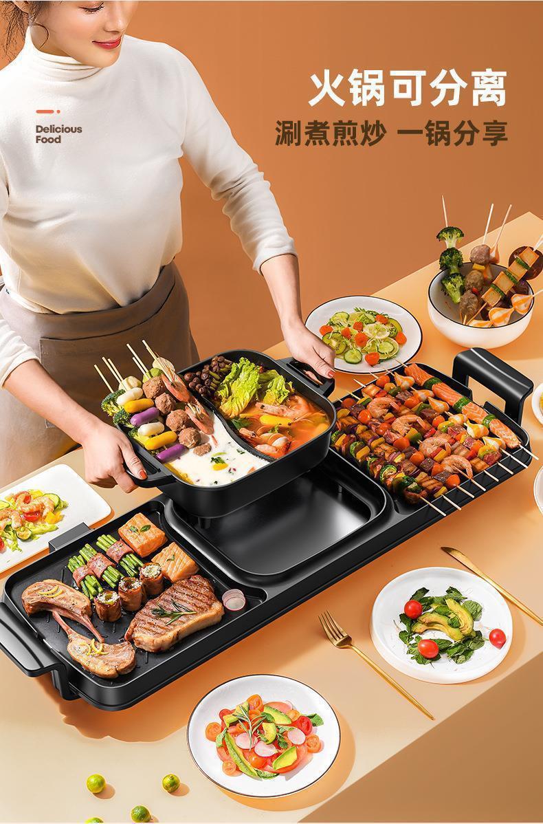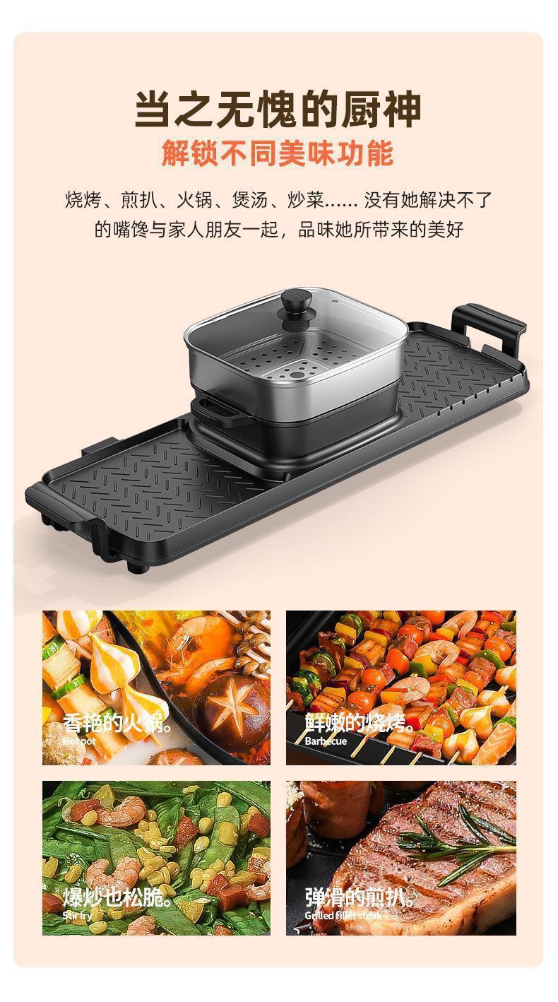 엄밀히 선정 된 전기 바베큐 오븐 가정용 한국식 다기능 바베큐 기계 무연 린스 구이 만다린 오리 핫팟 올인원 팬 튀김 및 굽기 기계스토어 가기
