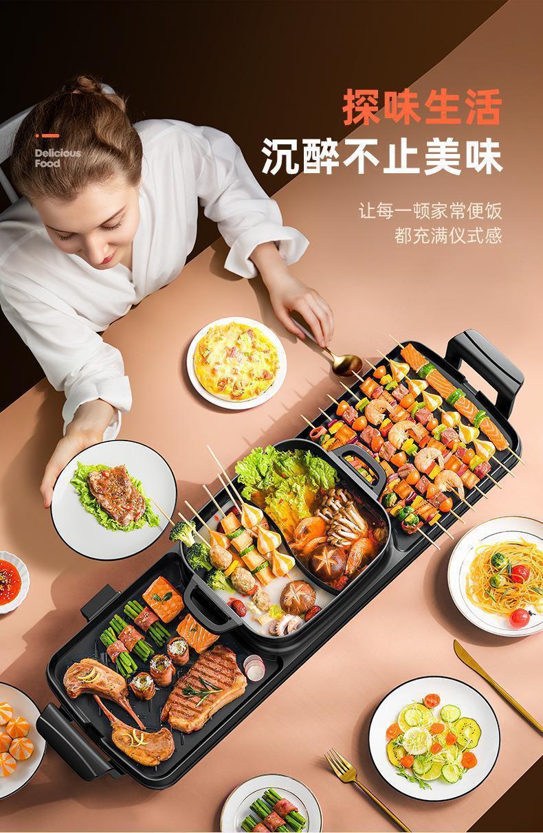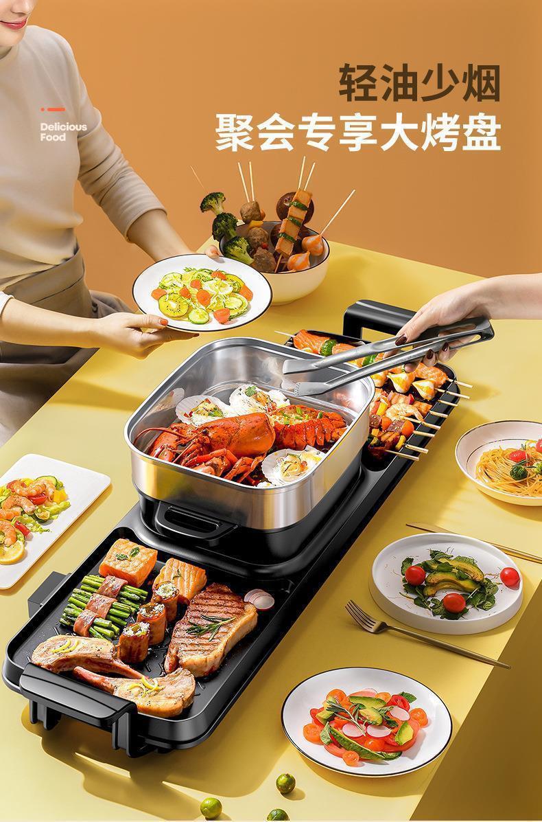 엄밀히 선정 된 전기 바베큐 오븐 가정용 한국식 다기능 바베큐 기계 무연 린스 구이 만다린 오리 핫팟 올인원 팬 튀김 및 굽기 기계
