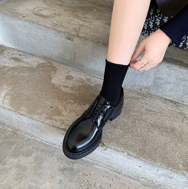 포도 엄마 스튜디오리 영국 스타일 레이스 업 라운드 토 샤이니 옥스포드 신발 두꺼운 굽 플랫폼 가죽 신발 여성 여름스토어 가기