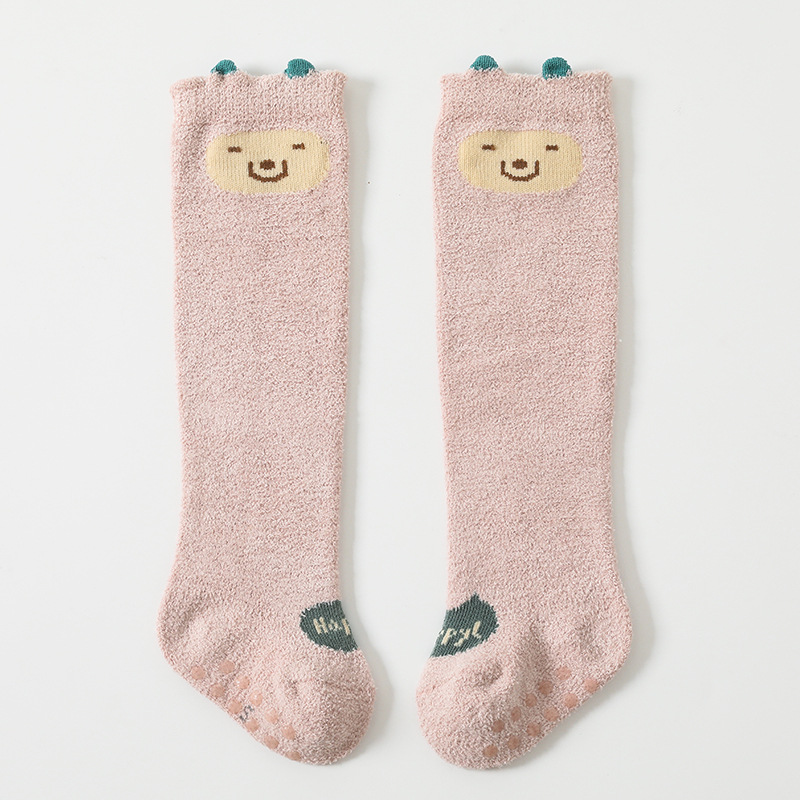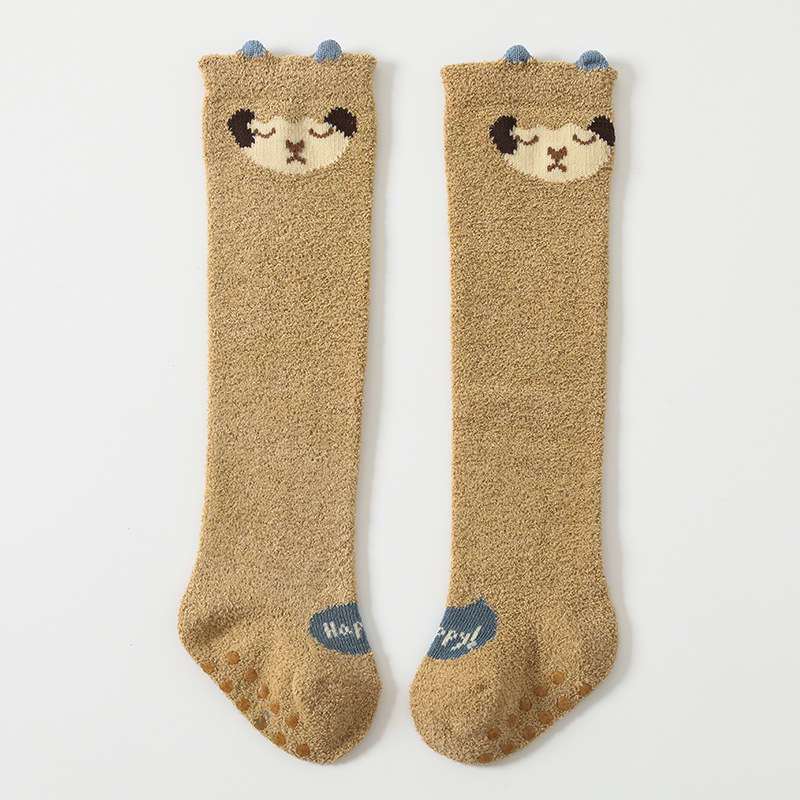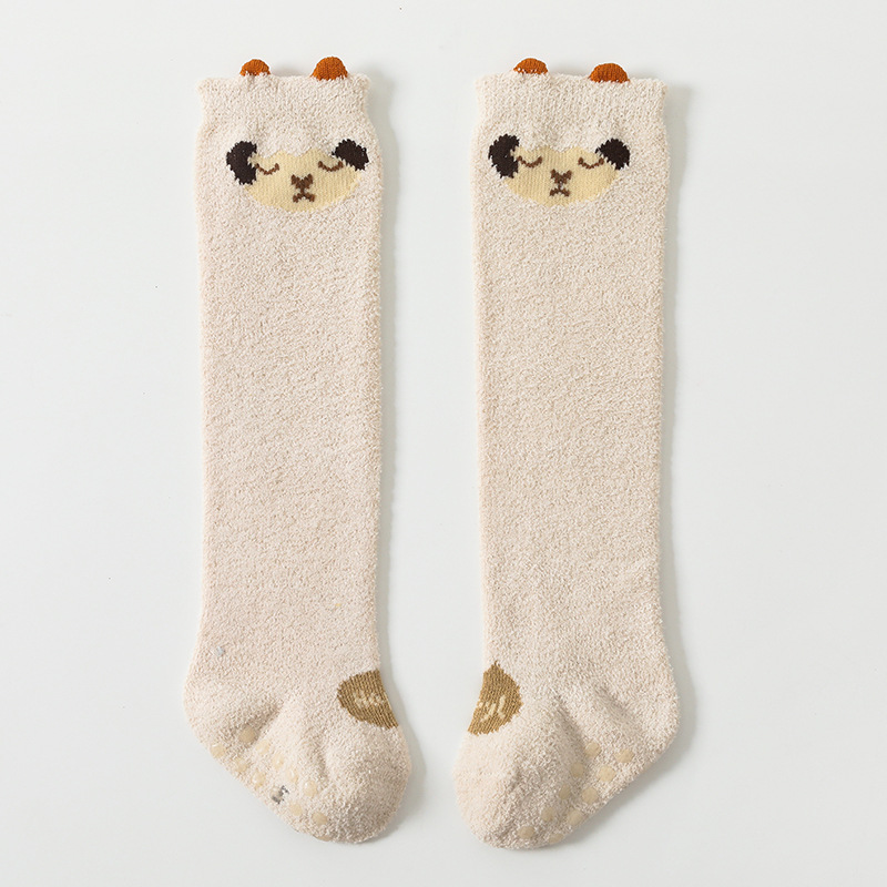 Liu Chengxing 가을과 겨울 따뜻한 작은 높은 배럴 아기 양말 두꺼운 부드러운 귀여운 만화 아기 양말 미끄럼 방지 스타킹