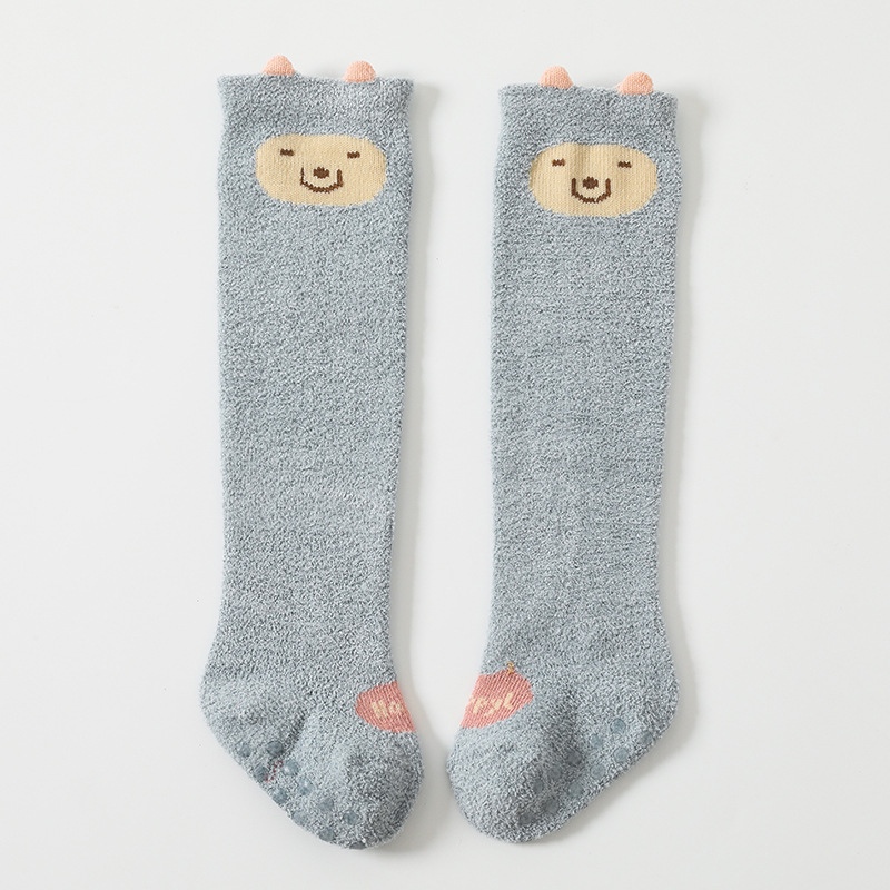 Liu Chengxing 가을과 겨울 따뜻한 작은 높은 배럴 아기 양말 두꺼운 부드러운 귀여운 만화 아기 양말 미끄럼 방지 스타킹스토어 가기