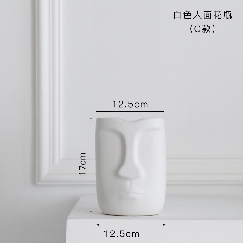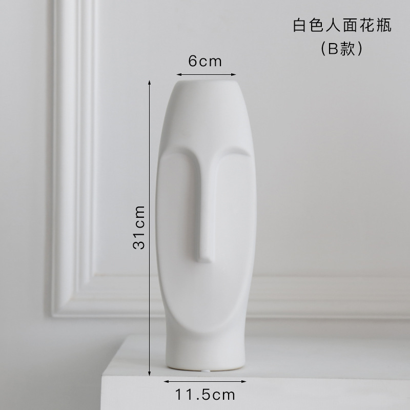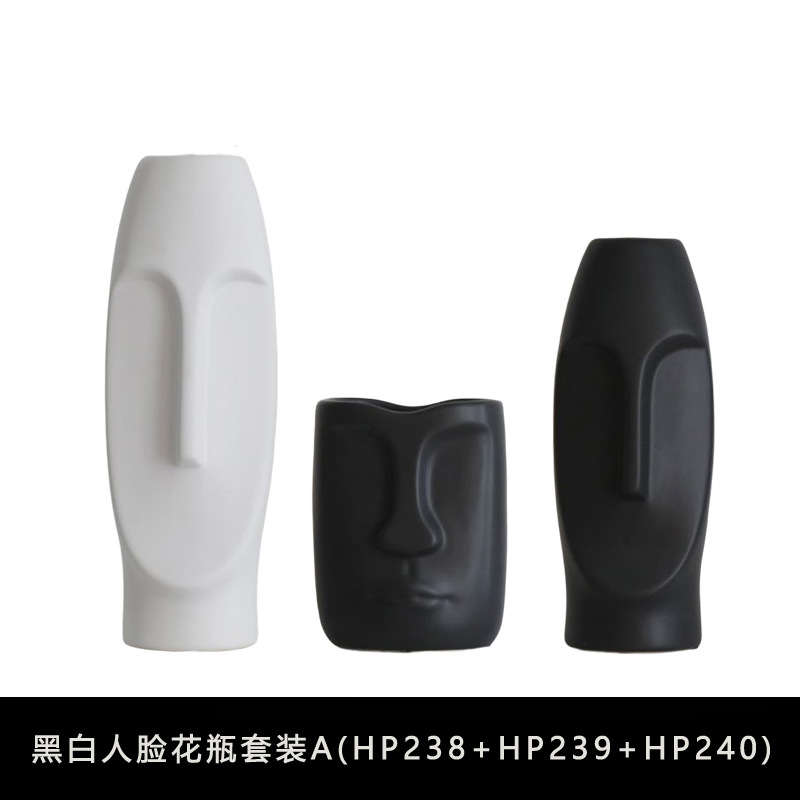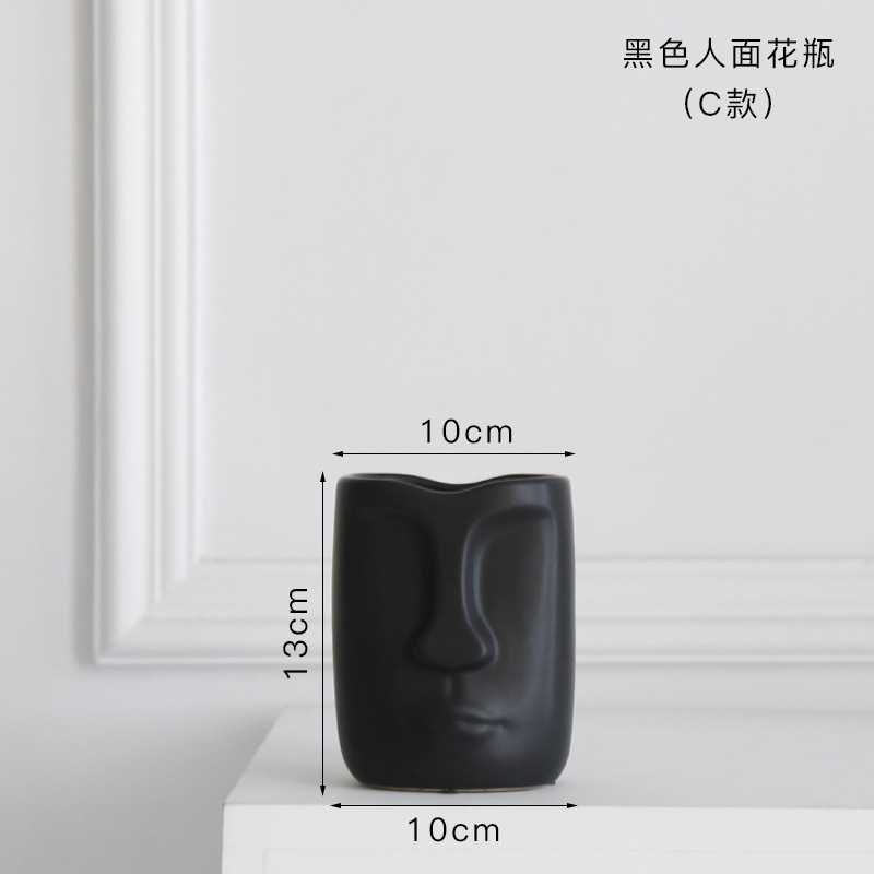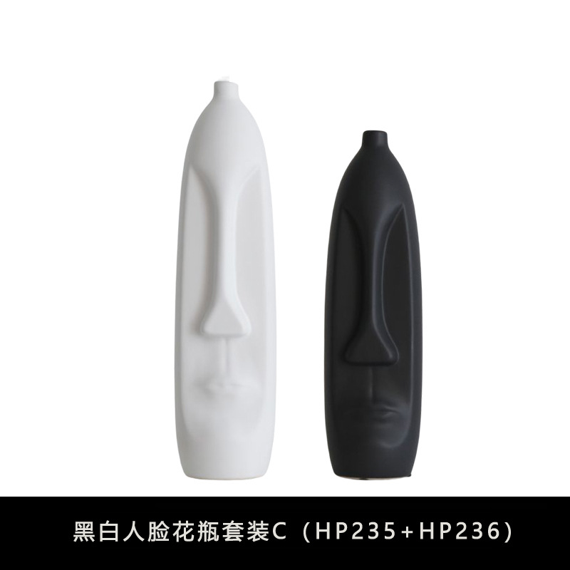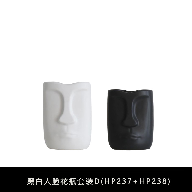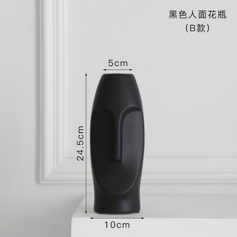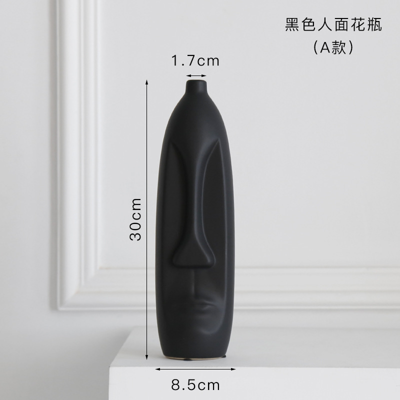북유럽 크리 에이 티브 간단한 흑백 세라믹 꽃병 스타일 거실 말린 꽃 배열 얼굴 예술 장식 장식품