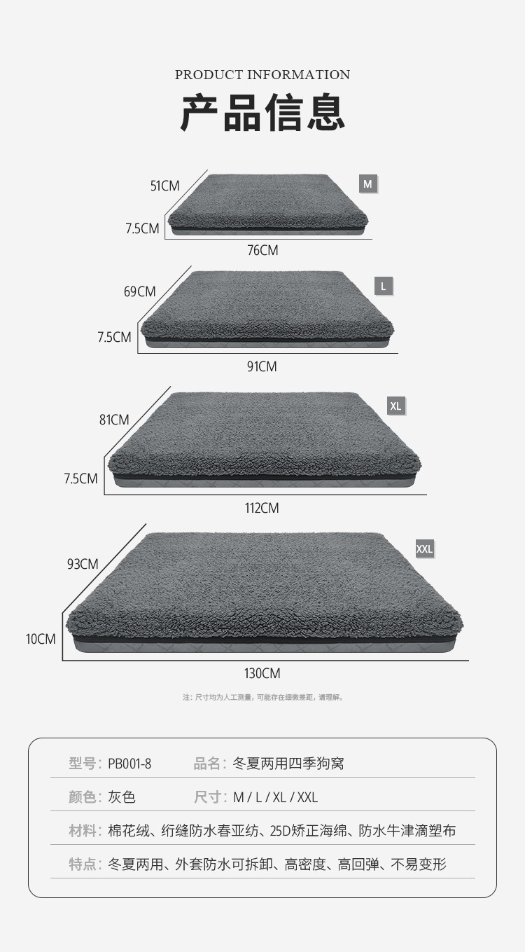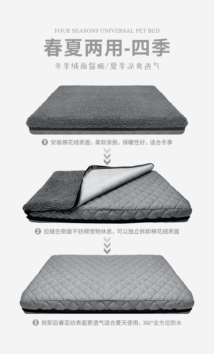 아마존 폭발 겨울과 여름 이중 사용 분리형 애완 동물 개 둥지 패드 방수 따뜻한 봄과 아시아 회전 면 양털 플랫 패드
