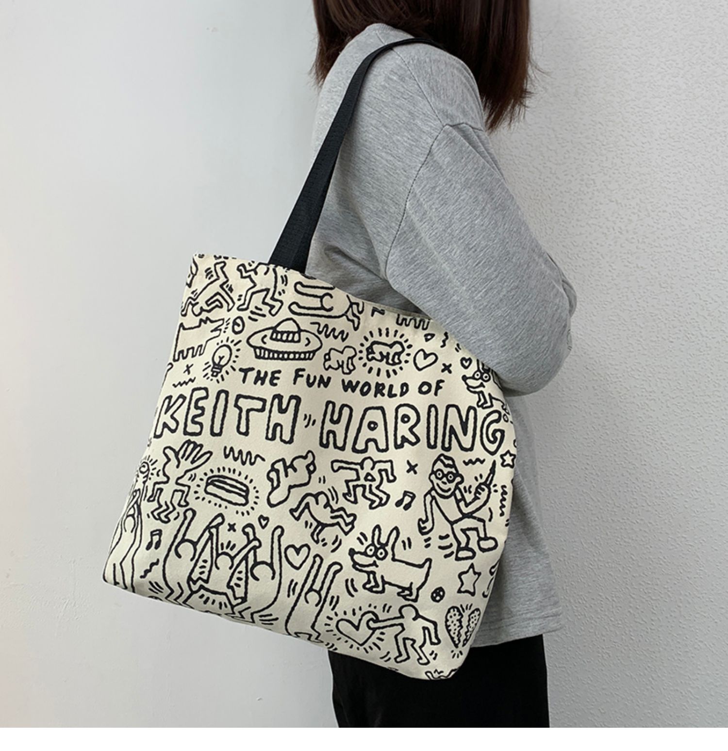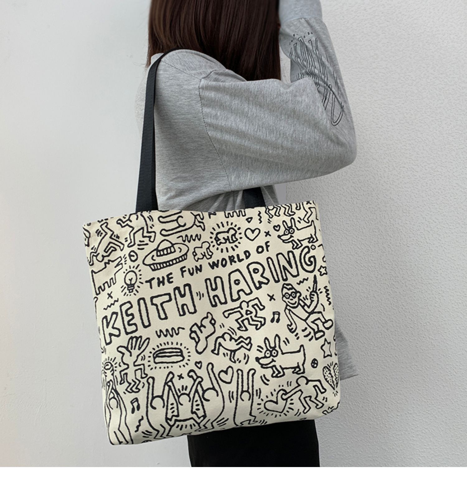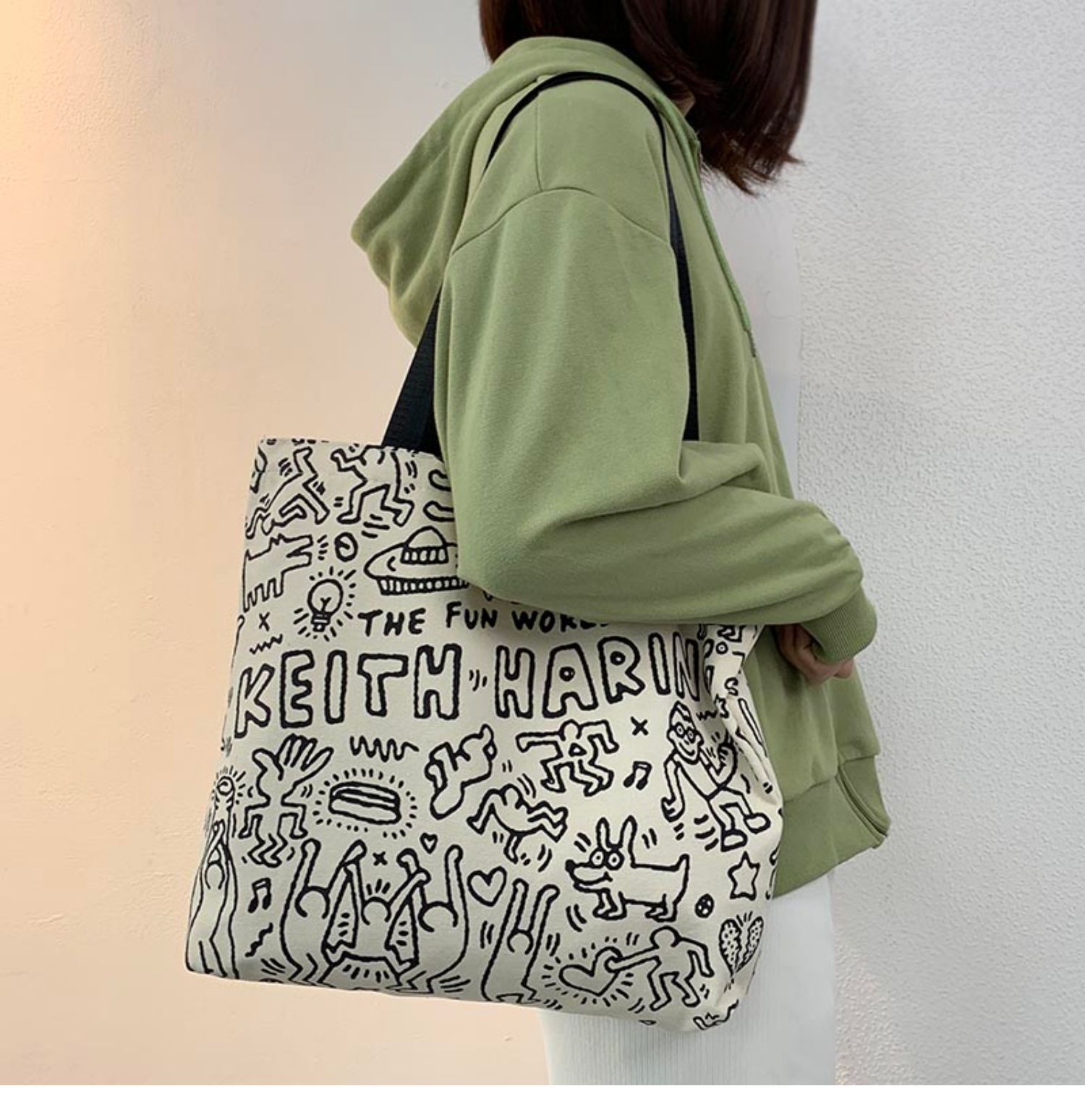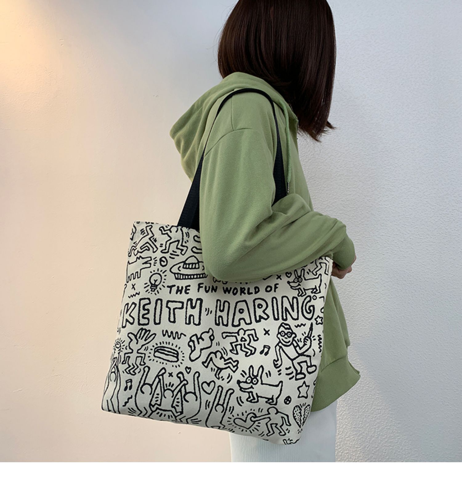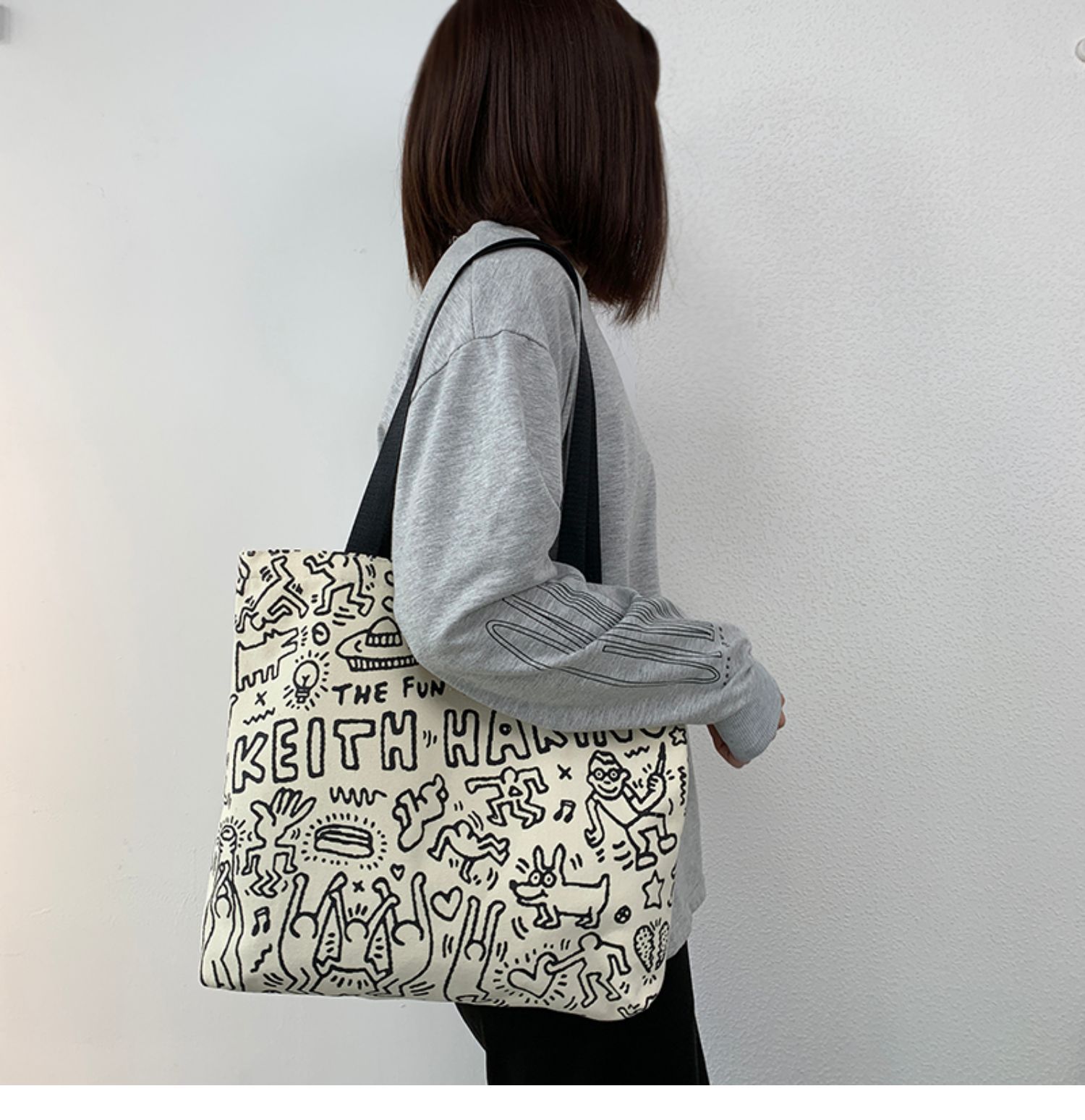 Han Feng 새로운 캔버스 가방 여대생 수업 어깨 휴대용 책가방 대용량 틈새 귀여운 천 가방스토어 가기