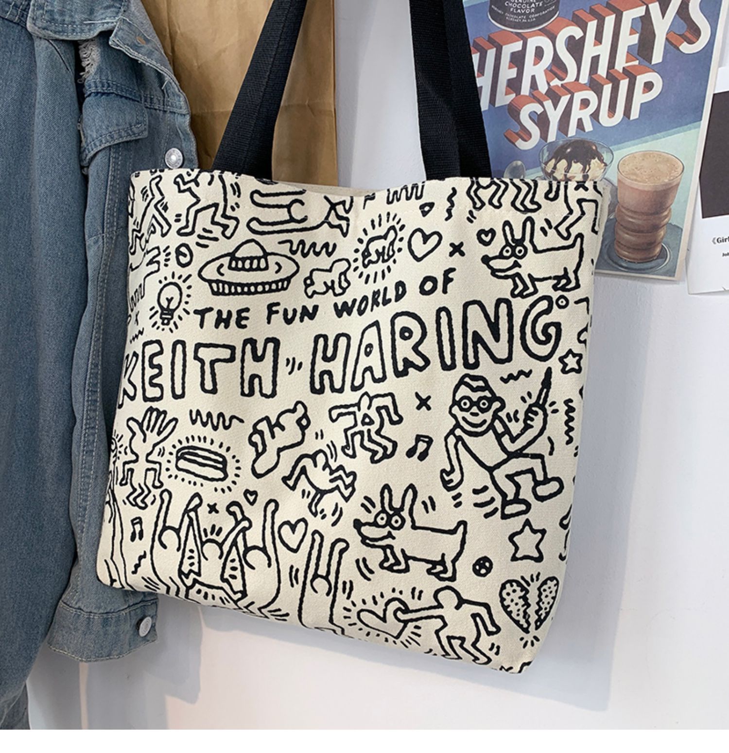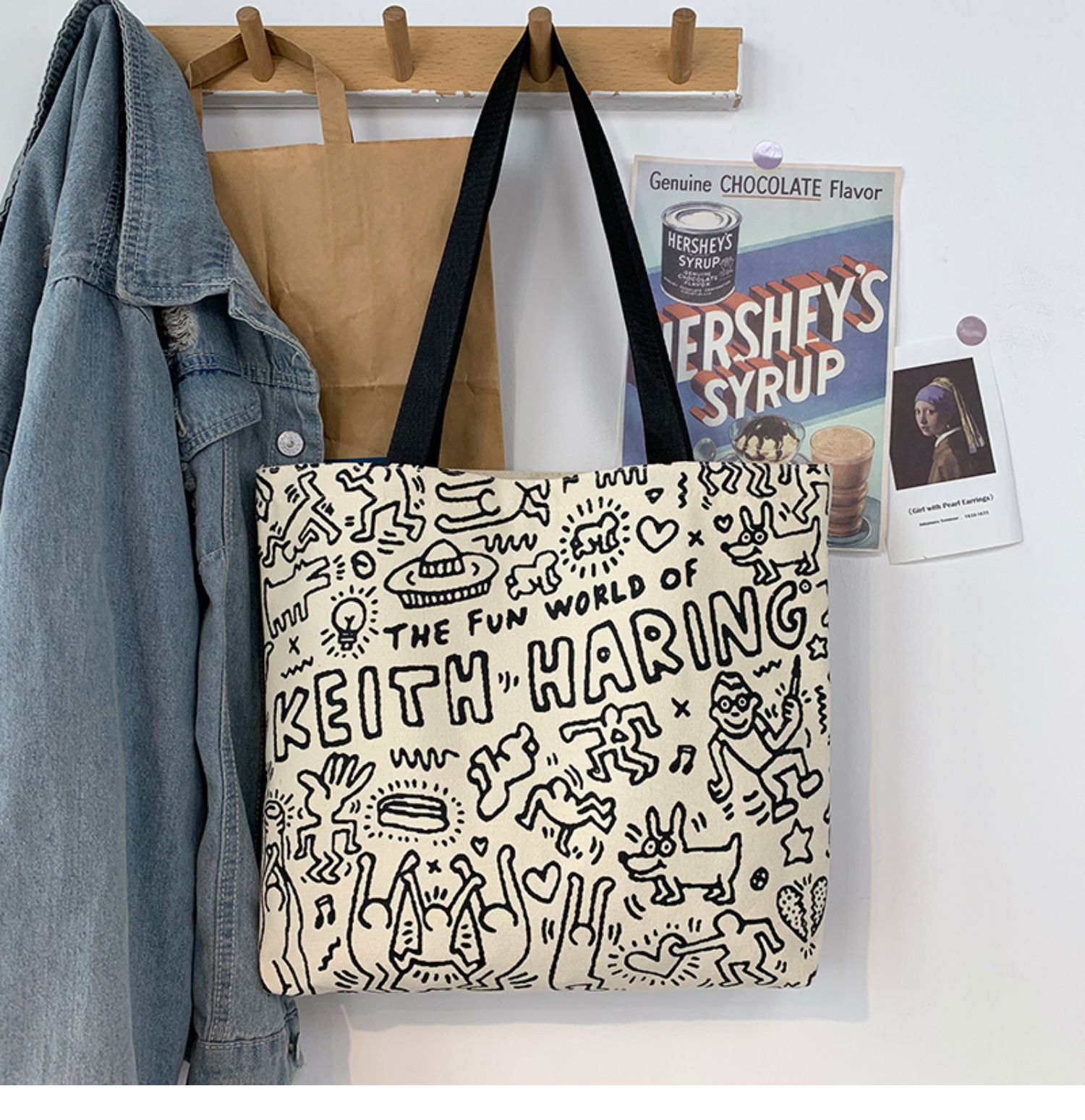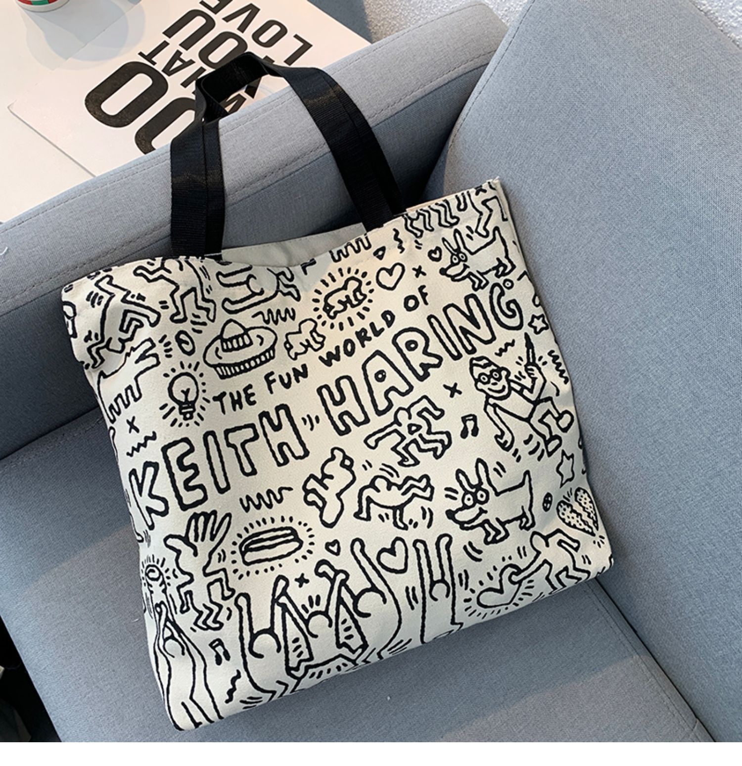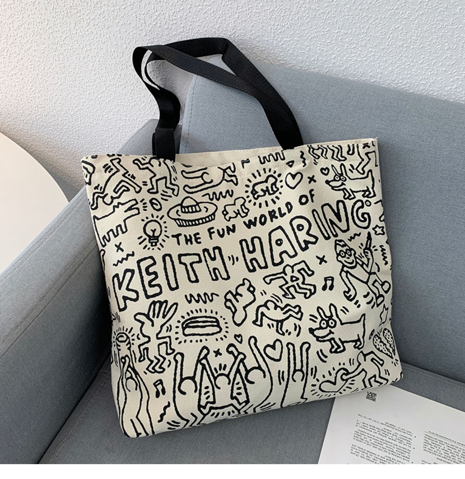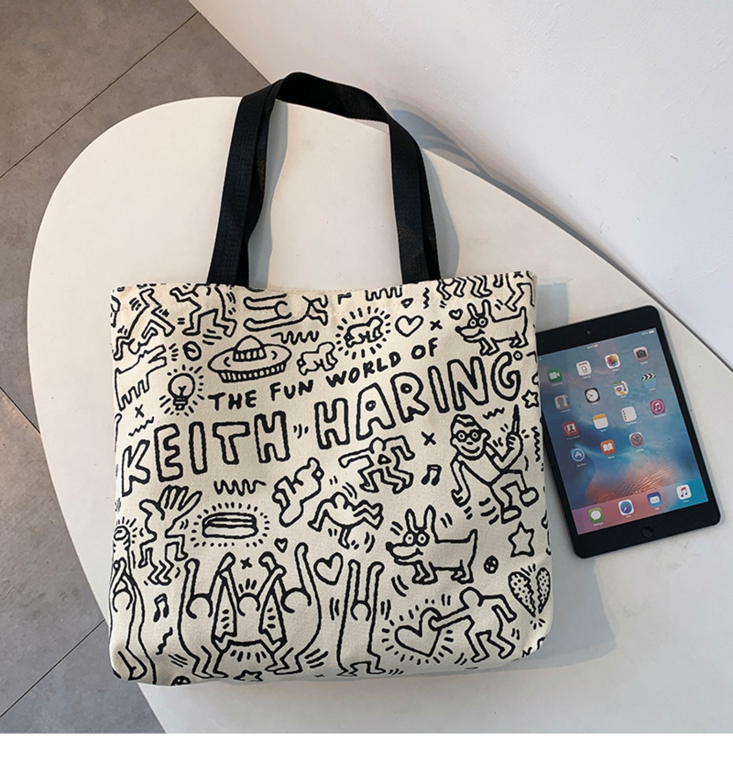 Han Feng 새로운 캔버스 가방 여대생 수업 어깨 휴대용 책가방 대용량 틈새 귀여운 천 가방스토어 가기