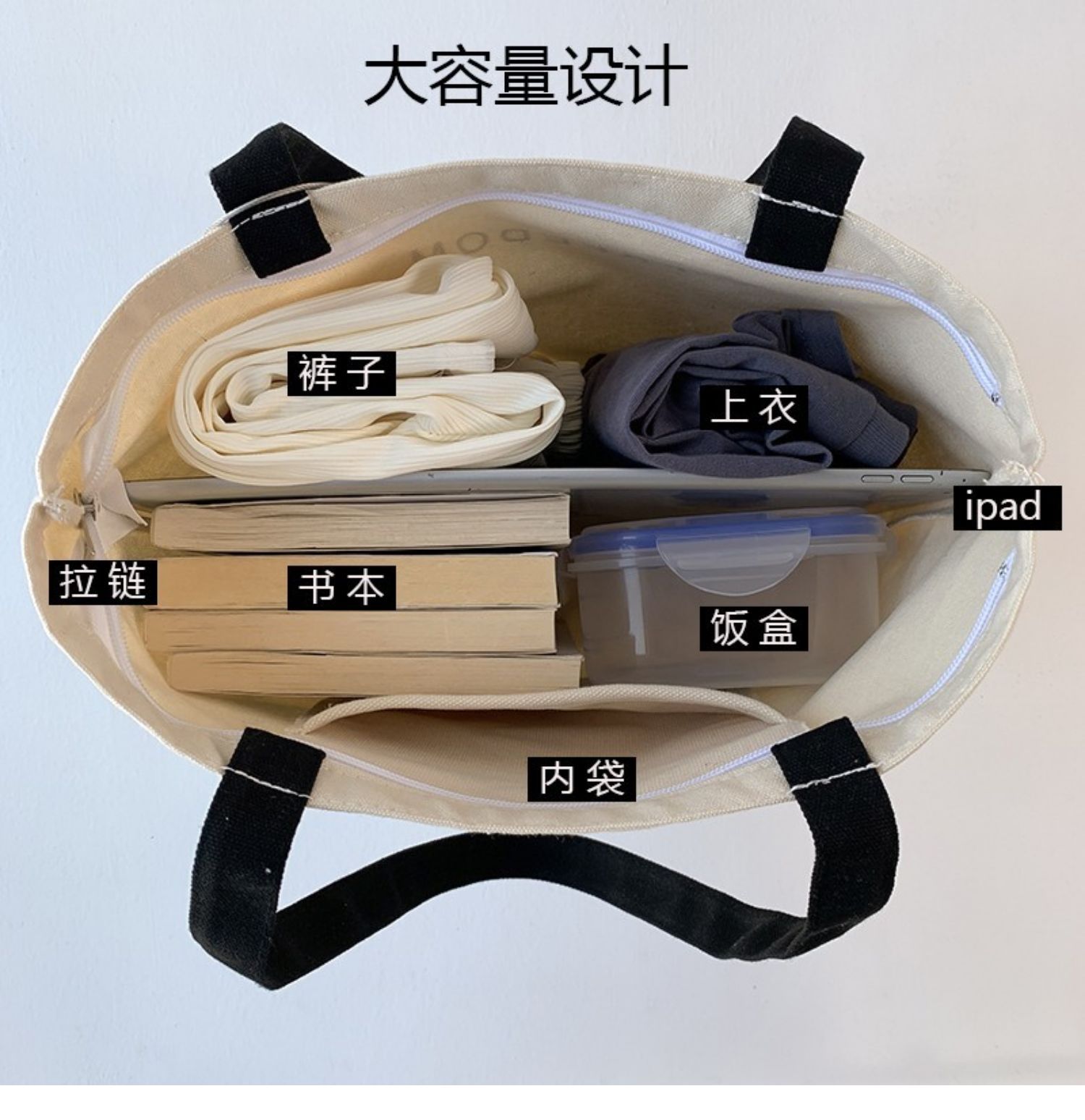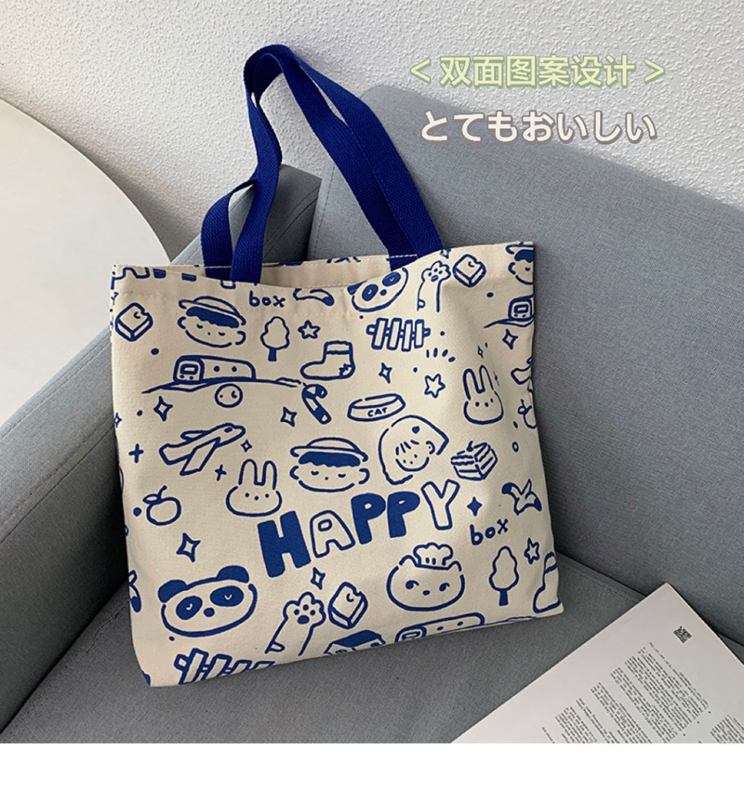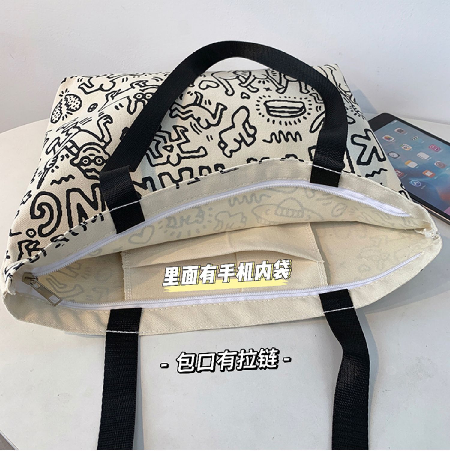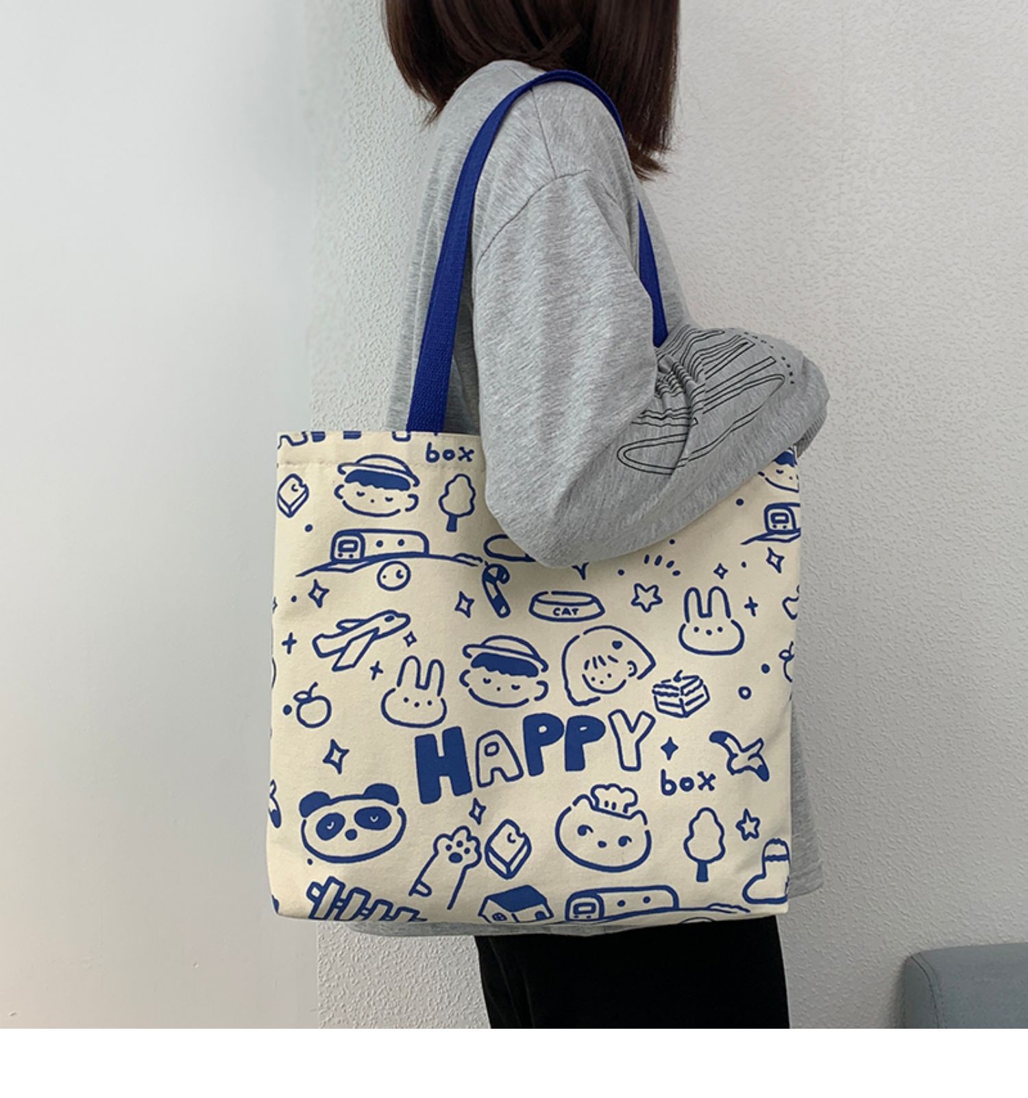 Han Feng 새로운 캔버스 가방 여대생 수업 어깨 휴대용 책가방 대용량 틈새 귀여운 천 가방