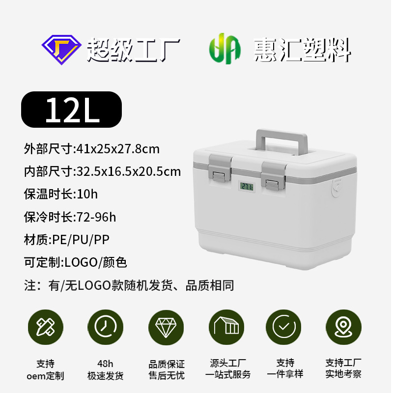 • 따뜻한 디스플레이가있는 12L 흰색 380ml 얼음 상자 * 2 아이스 백 * 6