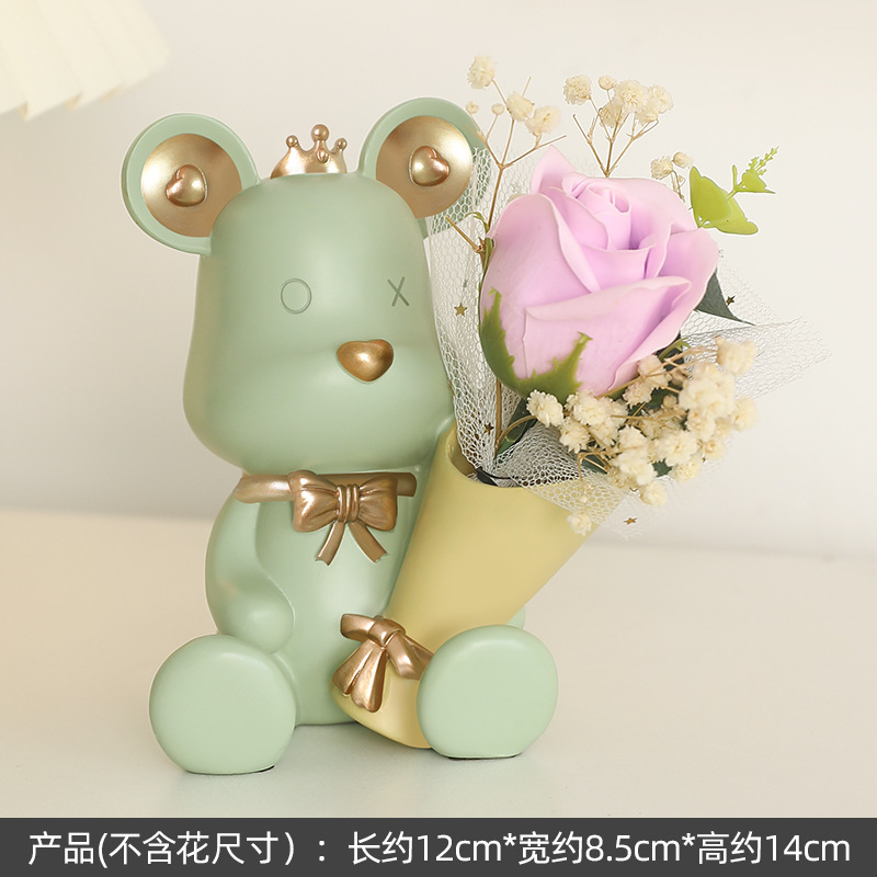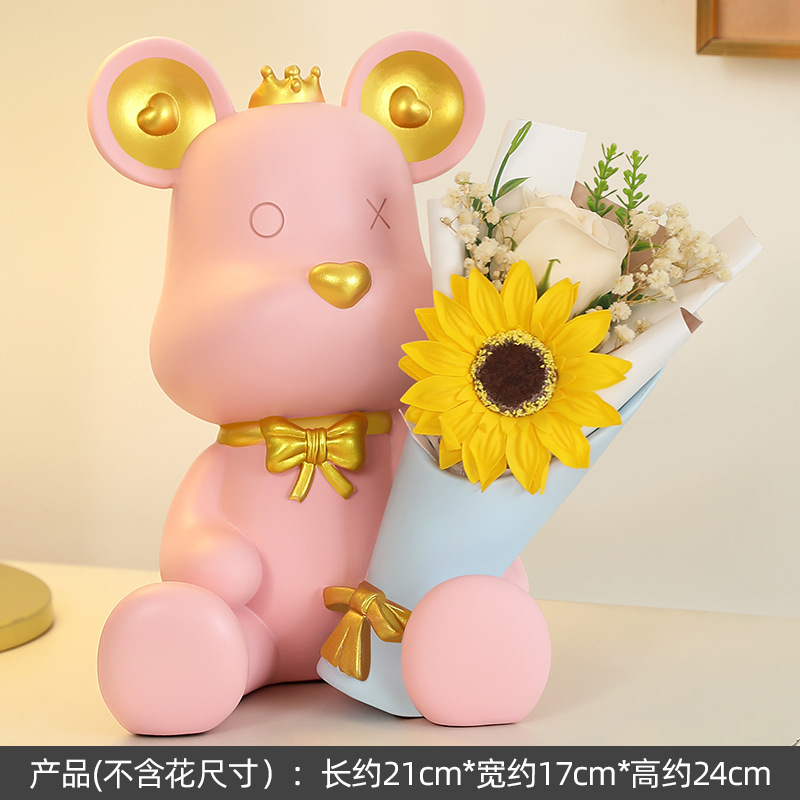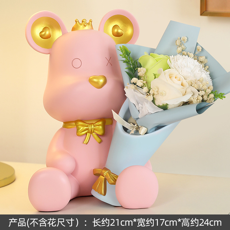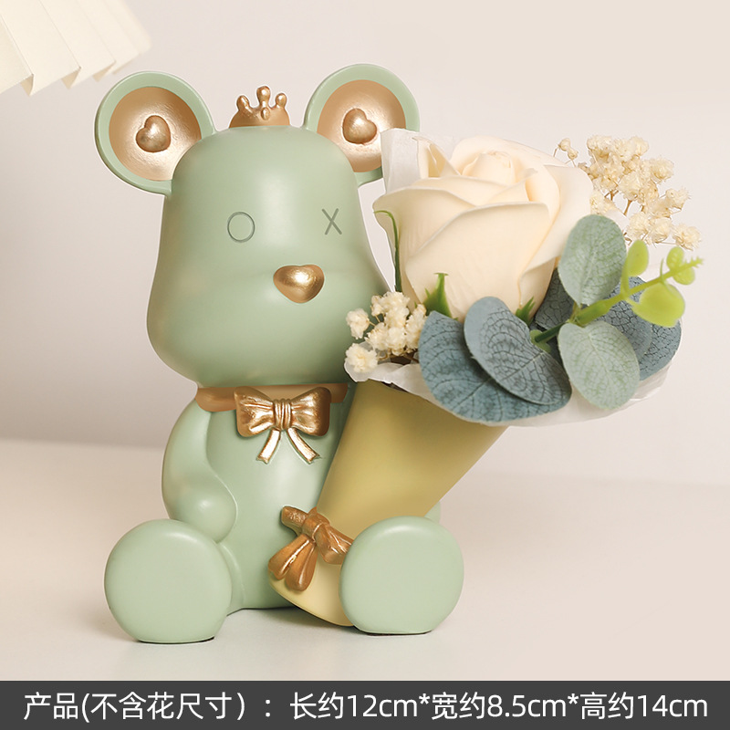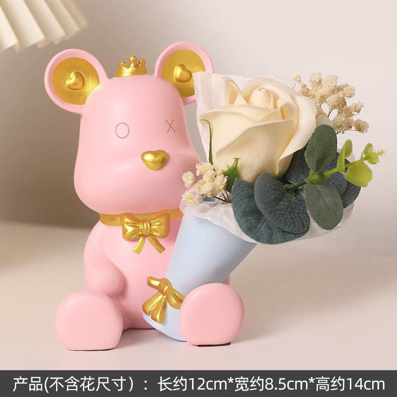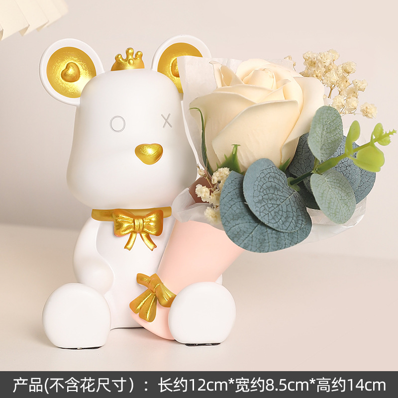 꽃 곰 장식 장식품 하이 엔드 라이트 럭셔리 거실 책장 장식 남성과 여성의 생일 선물 수지 공예