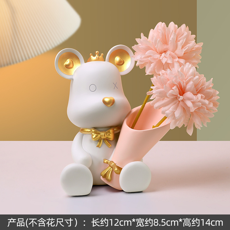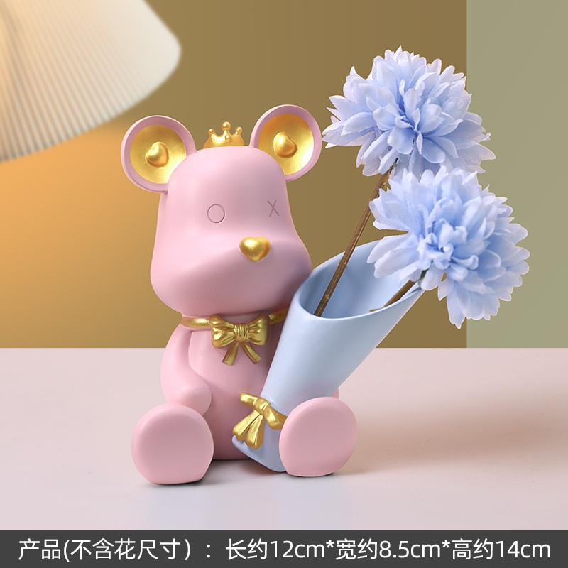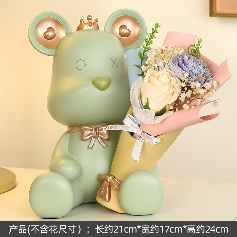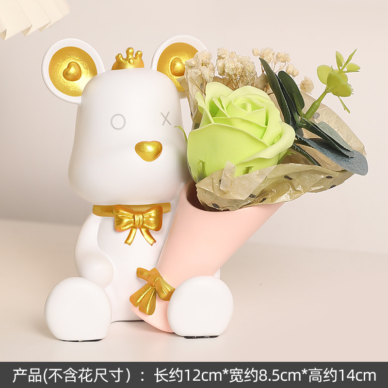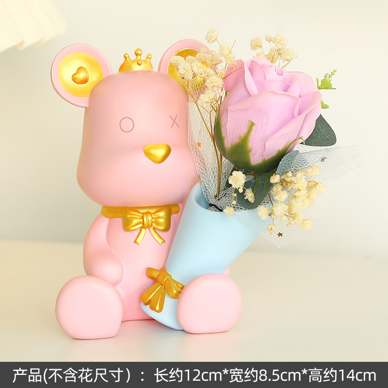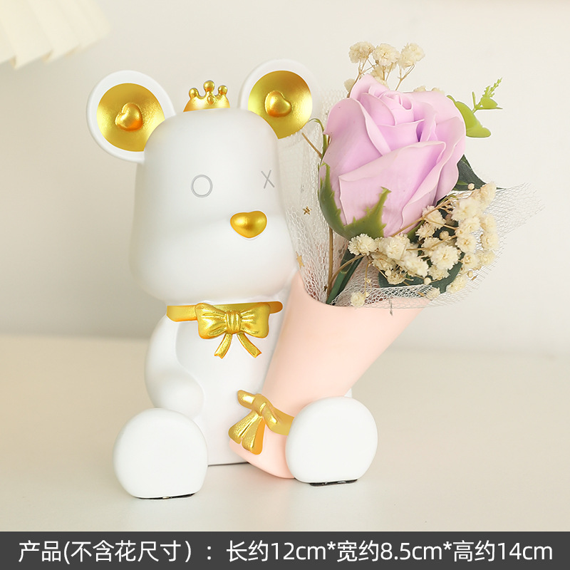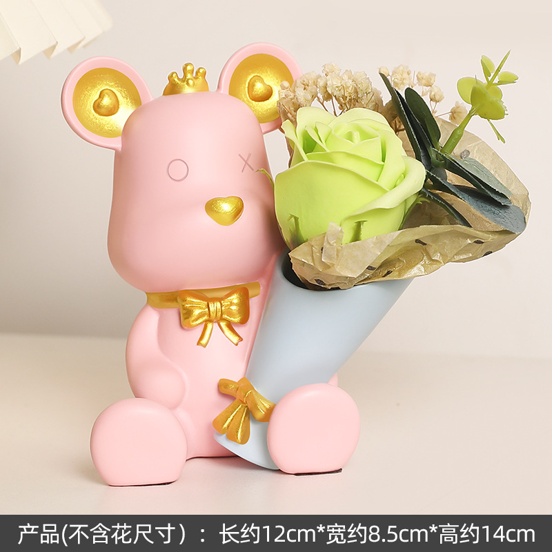꽃 곰 장식 장식품 하이 엔드 라이트 럭셔리 거실 책장 장식 남성과 여성의 생일 선물 수지 공예