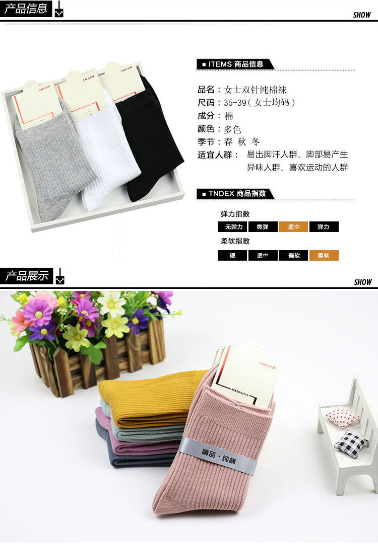 여성용 면화 양말 가을과 겨울 두꺼운 따뜻한 이중 바늘 착용 높은 허리 스타킹 탈취제 땀 흡수성 통기성 양말스토어 가기