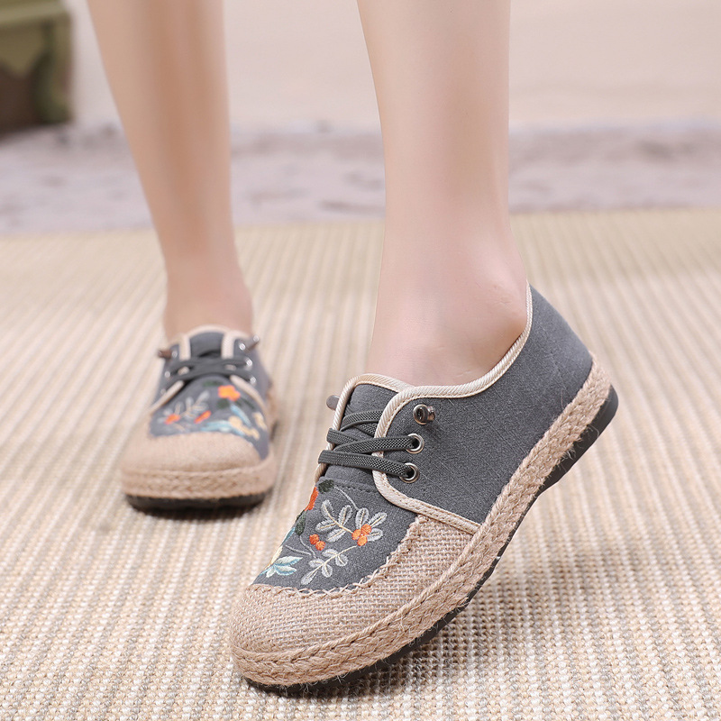 봄과 가을 새로운 어부 신발 올드 베이징 천 신발 여성용 에스닉 스타일 자수 신발 슬립온 게으른 캐주얼 큰 발가락 신발스토어 가기