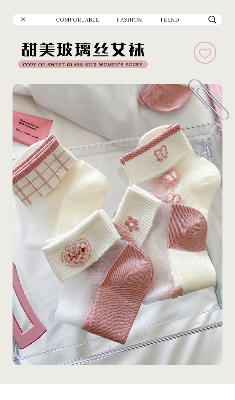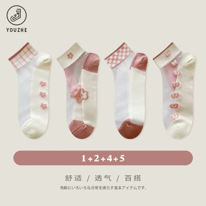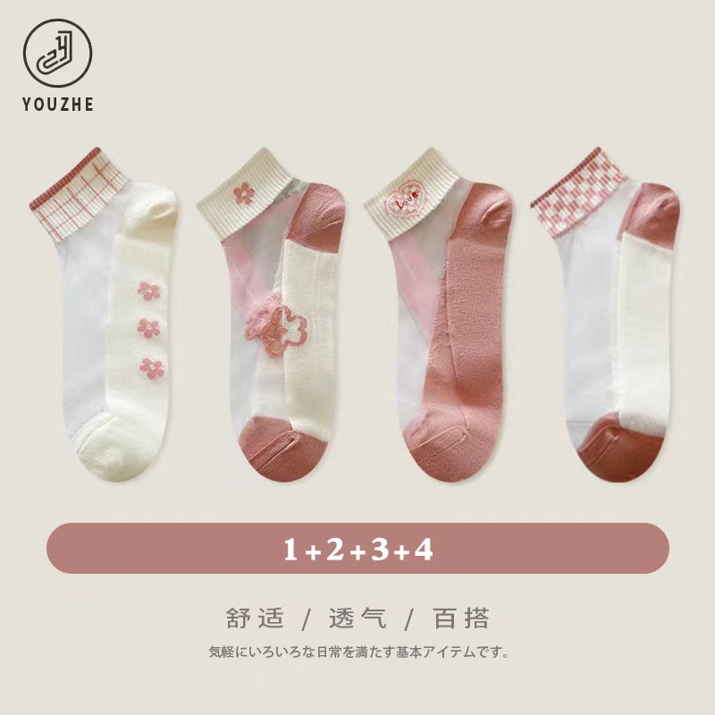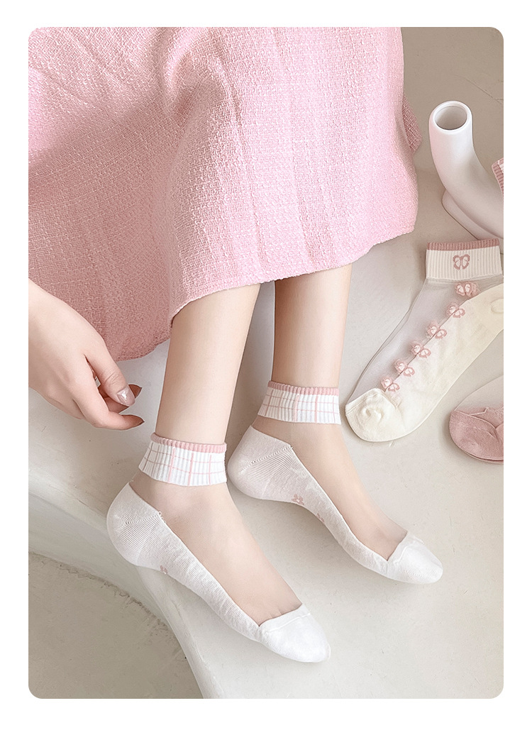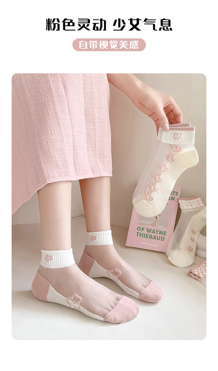 크리스탈 양말 여성용 유리 실크 스타킹 여름 얇은 투명 면 바닥 통기성 여성 양말 인스 타 그램 인기 인터넷 인기 여름스토어 가기