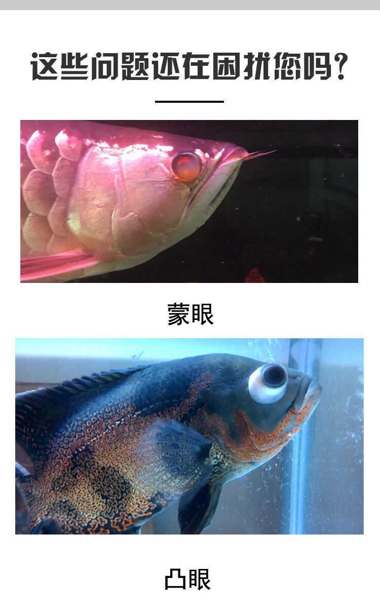 鱼眼宝是针对鱼类的眼球、眼穴病毒性、原虫感染以及因缺乏眼睛必需营养所导致的眼疾,如内障、充血、凸眼、近视、朦眼、眼球粘膜、眼组织充血、白浊等。