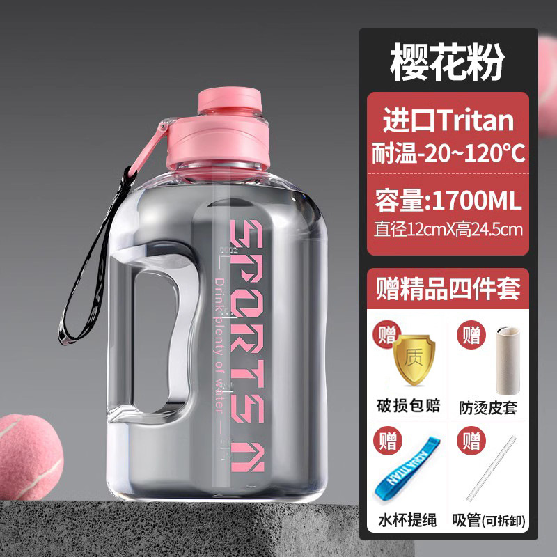 • 톤 배럴 트리탄 소재 1.7L 핑크 (가죽 소매 짚 컵 브러시)