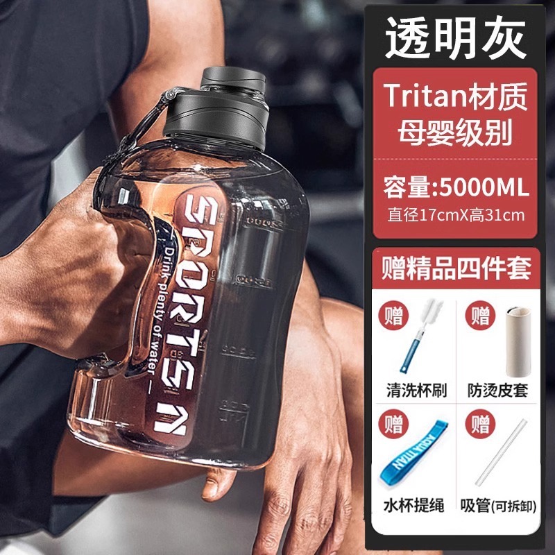 • 톤 배럴 트리탄 소재 5.0L 회색 (가죽 소매 짚 컵 브러시)