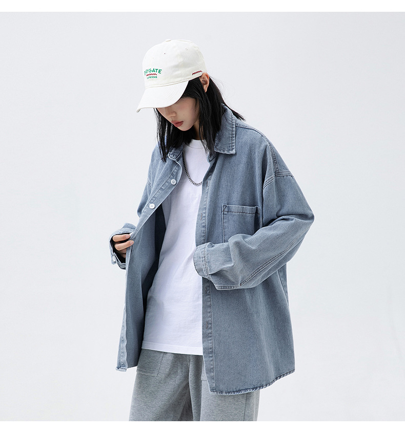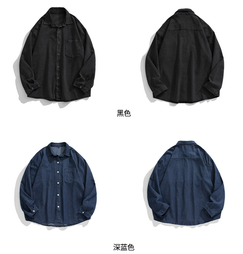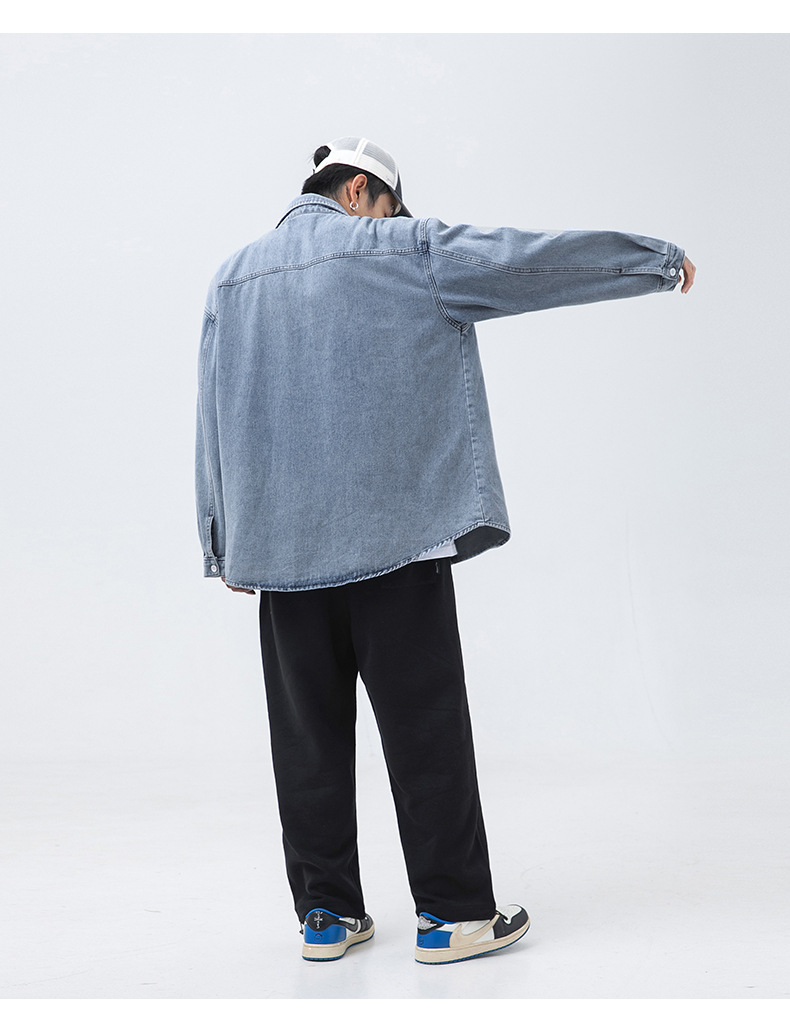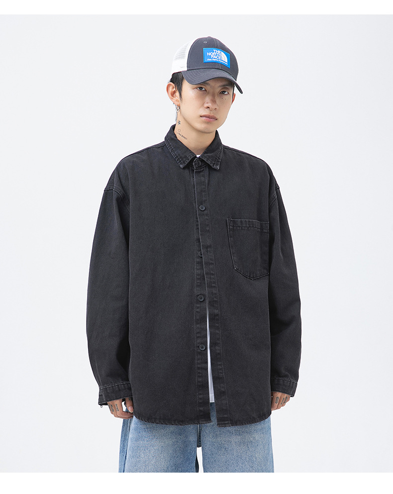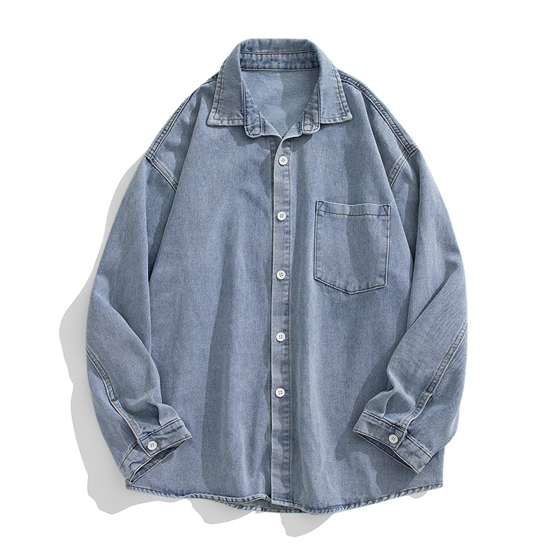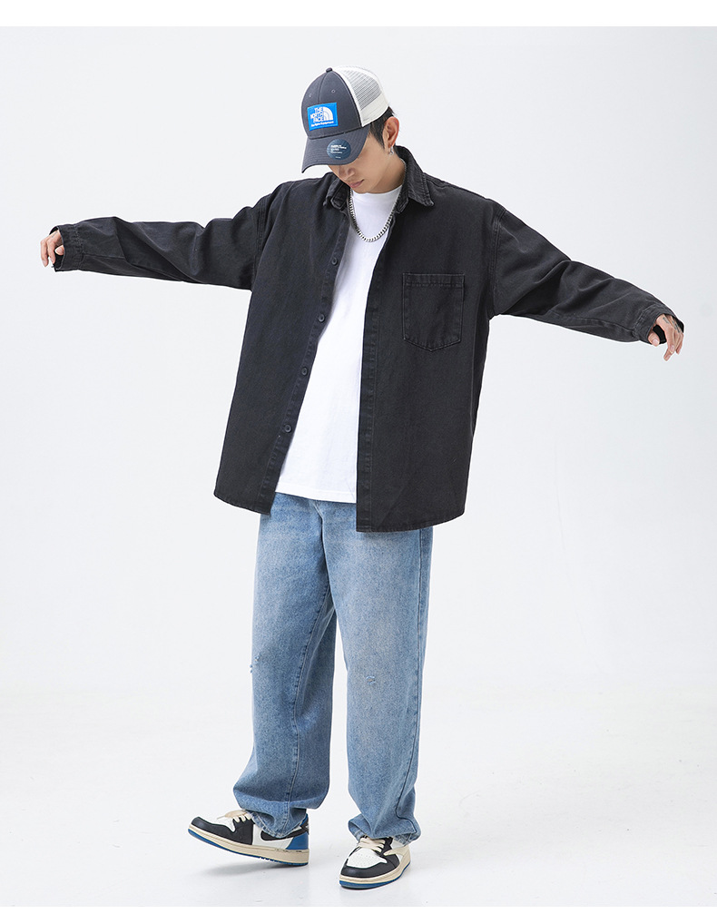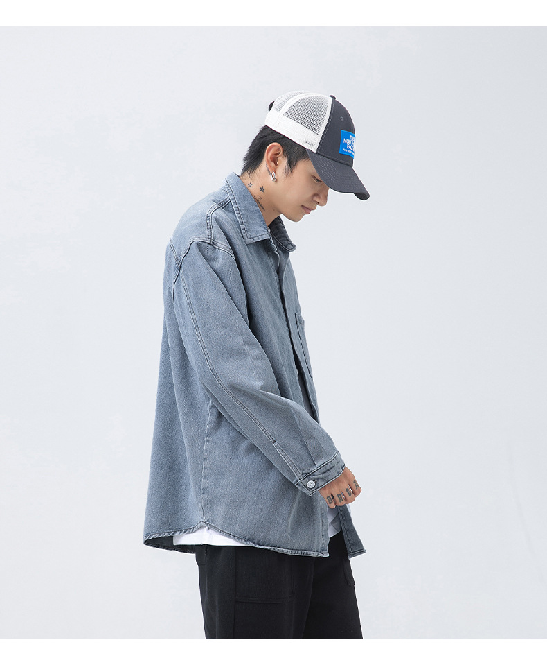 한루 일본 남성 봄 데님 긴팔 셔츠 남성 루즈한 기본 다용도 캐주얼 워싱 셔츠 재킷스토어 가기
