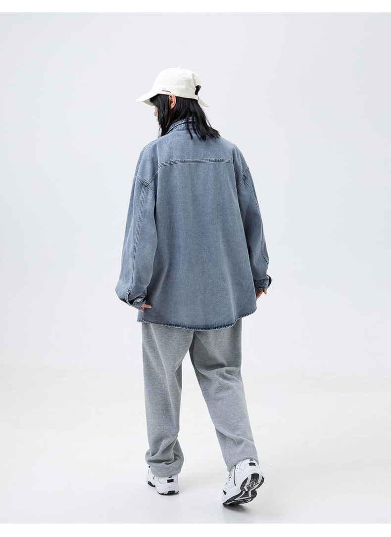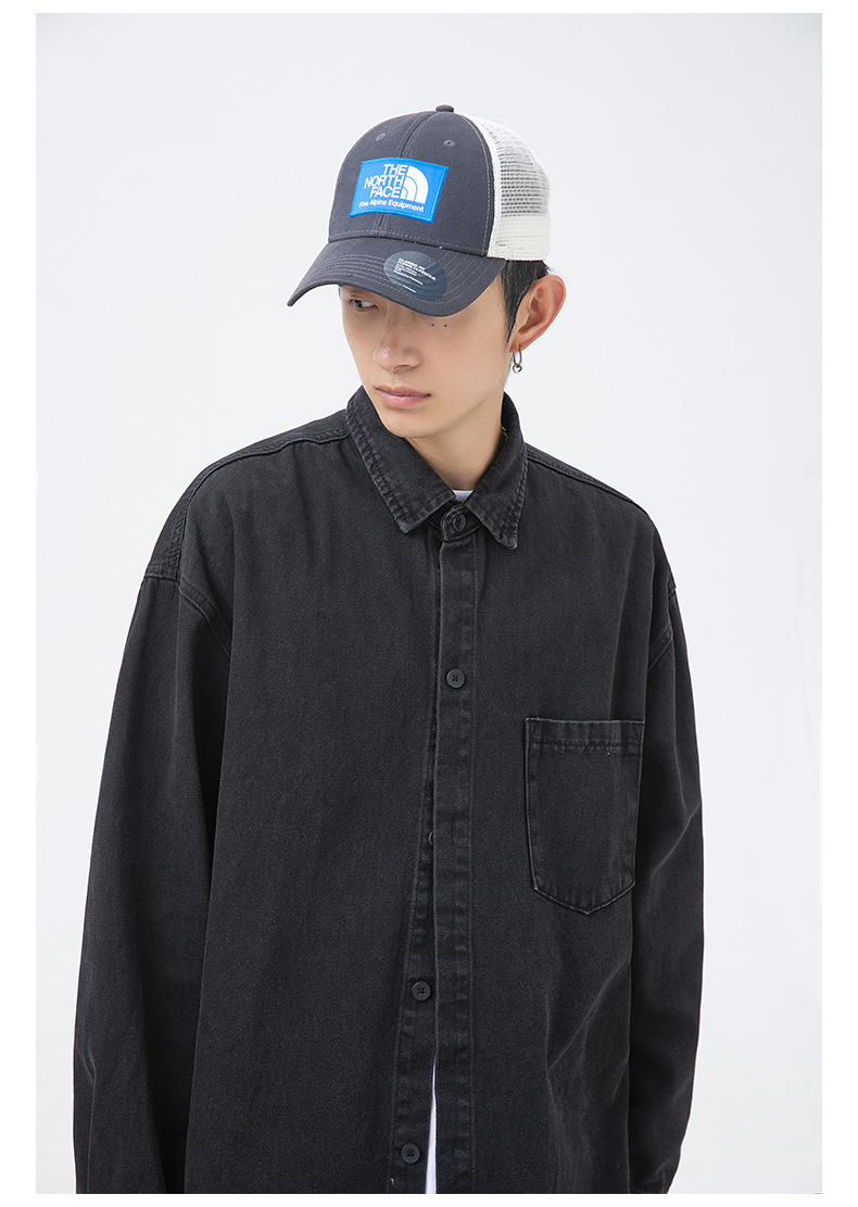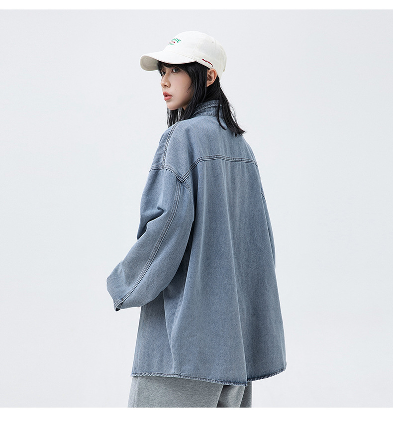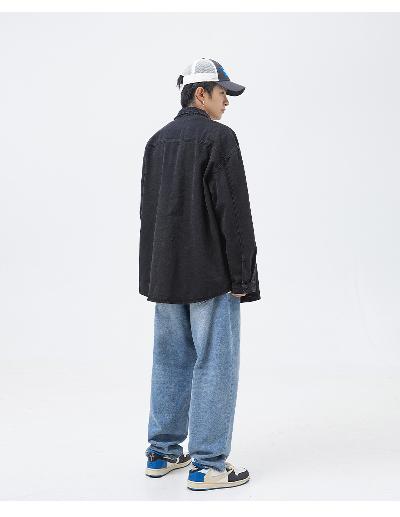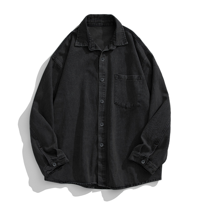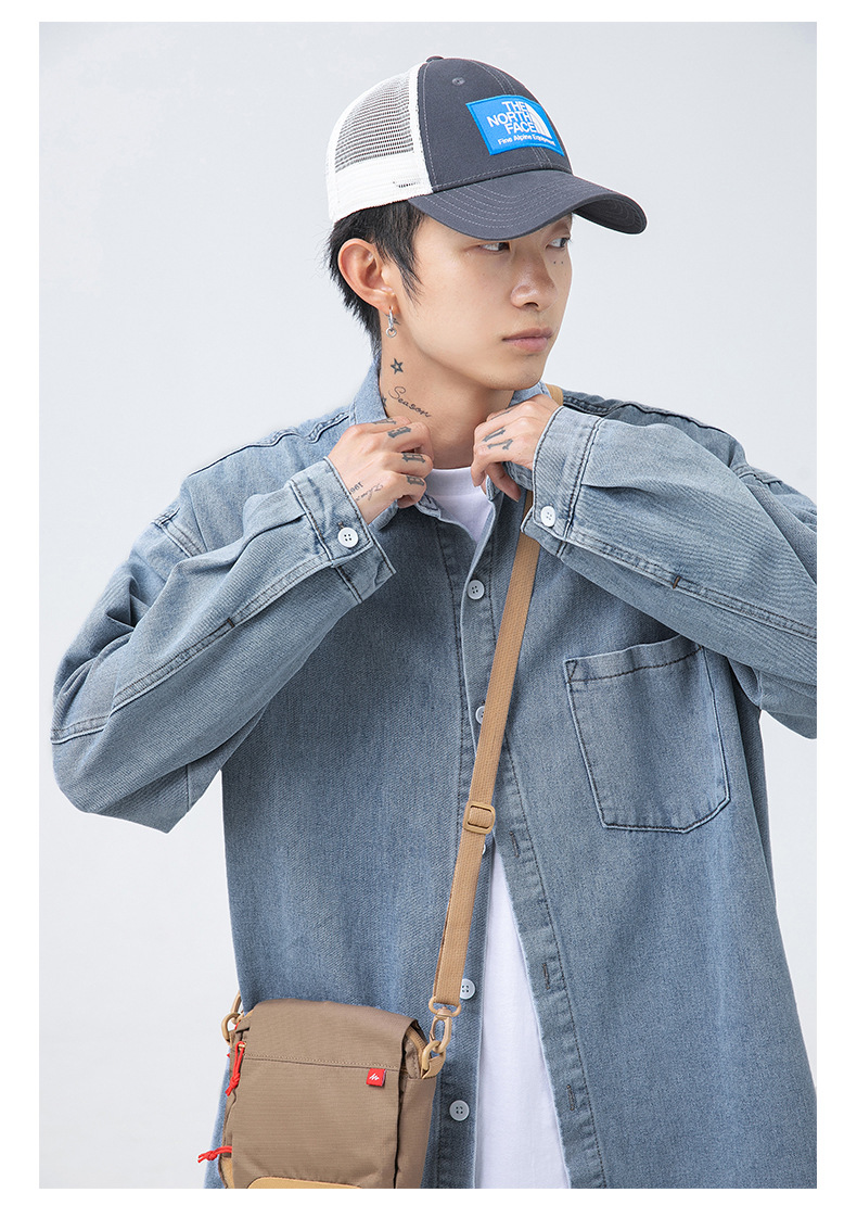한루 일본 남성 봄 데님 긴팔 셔츠 남성 루즈한 기본 다용도 캐주얼 워싱 셔츠 재킷스토어 가기