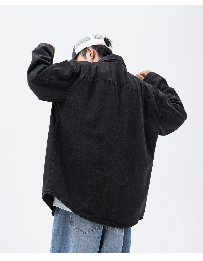 한루 일본 남성 봄 데님 긴팔 셔츠 남성 루즈한 기본 다용도 캐주얼 워싱 셔츠 재킷